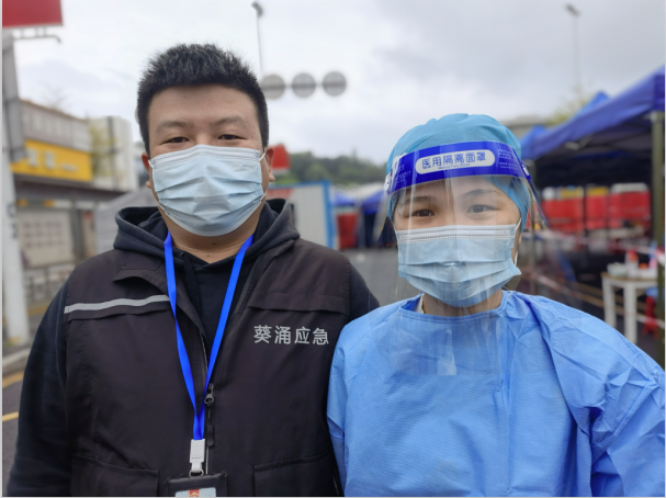 據(jù)了解,“抗疫先鋒小分隊(duì)”中還有郭逸華與陳啟忠這對“夫妻檔”也是一樣,每天堅(jiān)持奮戰(zhàn)在防疫一線。