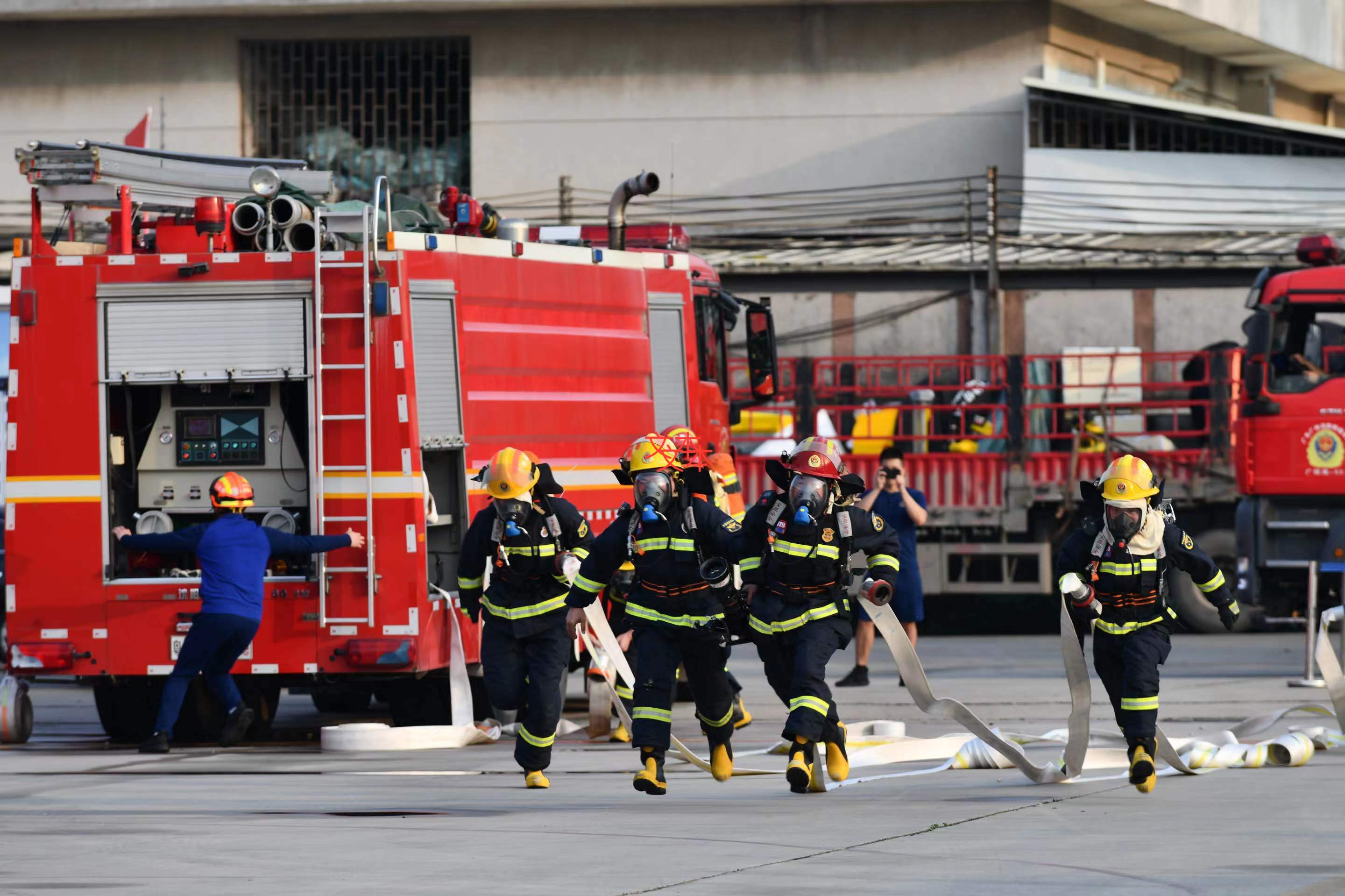 “預(yù)備,開始!”隨著裁判員一聲令下,廣州首屆春季消防運動會在重型機械工程救援大隊正式拉開帷幕。