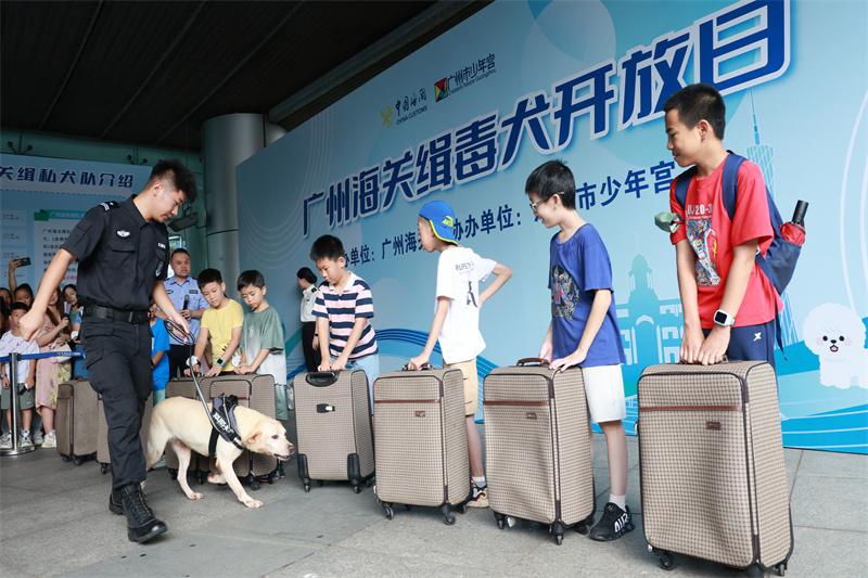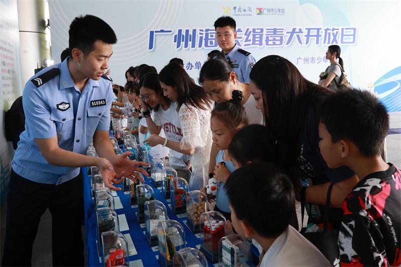 6月22日,廣州海關聯(lián)合廣州市少年宮舉辦“緝毒犬開放日”活動,通過寓教于樂的禁毒宣傳活動,讓廣大市民朋友在趣味游戲中了解海關打擊毒品走私工作成效、禁毒常識,并與海關緝毒犬進行現(xiàn)場親密互動,活動吸引了400余名市民參加。