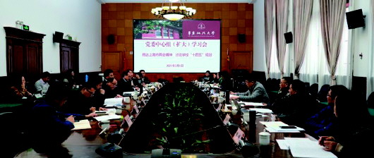 本報訊 記者余東明 2月1日,華東政法大學在長寧校區(qū)圓桌會議室召開黨委中心組(擴大)學習會,傳達上海市“兩會精神”,討論學校“十四五”規(guī)劃,共謀一流政法大學建設藍圖。華東政法大學領導和黨委常委及“十四五”規(guī)劃編寫組成員現(xiàn)場參會,各學院黨委(黨總支、直屬黨支部)書記、院長通過在線分會場參會。華東政法大學黨委書記郭為祿主持會議。  結合學習情況和學?!笆奈濉币?guī)劃實際,郭為祿對編制工作提出三方面要求:首先要繼續(xù)學深悟透,要繼續(xù)扎實深入學習習近平新時代中國特色社會主義思想,尤其是習近平法治思想、習近平總書記關于教育的重要論述和在上海考察時的重要講話精神。同時還要學習上海市“十四五”規(guī)劃征求意見稿等文件精神,把學?!笆奈濉币?guī)劃與中央和上海市的相關精神對標對表,做好頂層設計,著眼新發(fā)展格局;其次要做好貫徹落實,緊密結合各方面工作實際,上下貫通、左右逢源,運用好系統(tǒng)思維,學院規(guī)劃要擺在學校規(guī)劃里、學校規(guī)劃要擺在法治中國和上海市規(guī)劃建設中,緊抓大學的初心使命和根本任務,把為黨育人、為國育才的人才培育作為辦學第一要事,拿出特色“+法學”,分類發(fā)展、特色發(fā)展,培育德法兼修的法治人才;最后要切實做細做實,學校“十四五”規(guī)劃要前后有銜接,學校定位務必要準確、目標務必要明確,改革舉措有力度,具體措施有操作性,規(guī)劃清晰直接、引領性明確。