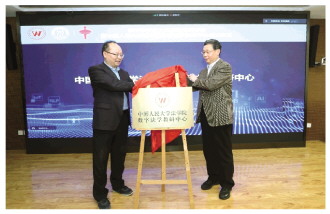 圖為姜偉(右)和王軼為“中國(guó)人民大學(xué)法學(xué)院數(shù)字法學(xué)教研中心”揭牌。