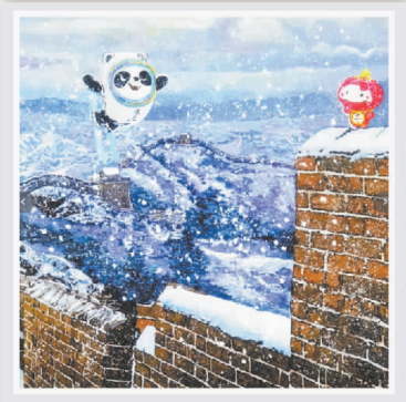 有人困于生活的瑣碎庸庸度日,也有人不甘平庸,在彷徨中奮力向前。舒勇在《一起向未來(lái)》系列作品中為我們開(kāi)辟了一個(gè)逃離單調(diào)現(xiàn)實(shí)的夢(mèng)幻世界,簡(jiǎn)單樸實(shí)的平面化特征,可愛(ài)的冰墩墩和雪容融形象高度概括、簡(jiǎn)潔又形神兼?zhèn)?,富有形式感、秩序感、韻律感,具有?qiáng)烈的裝飾性和形式美感,他對(duì)色彩的使用結(jié)合了綜合主義風(fēng)格,將我們卷入另一個(gè)時(shí)空,這就是藝術(shù)想象力的魅力所在。透過(guò)絢爛豐富的畫作,我們看到的是舒勇飽滿而熱烈的心靈,是最純粹的情感流淌,是源源不絕的熱切期待和渴望。