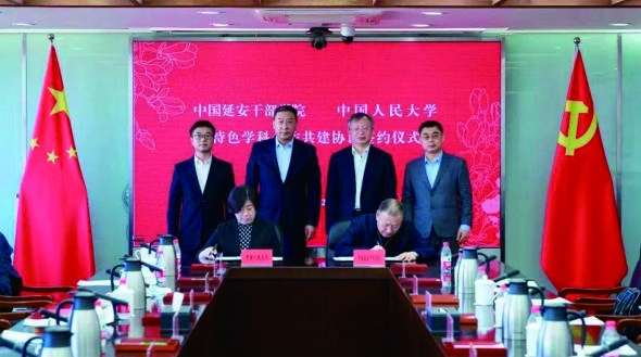 2月13日,中國人民大學(xué)與中國延安干部學(xué)院特色學(xué)科合作共建協(xié)議簽約儀式在中國人民大學(xué)舉行。中國人民大學(xué)黨委書記張東剛,黨委副書記、副校長胡百精,副校長王易;中國延安干部學(xué)院分管日常工作的副院長姜澤洵,副院長趙耀宏、韓東暉出席簽約儀式。中國人民大學(xué)黨委副書記齊鵬飛主持簽約儀式。