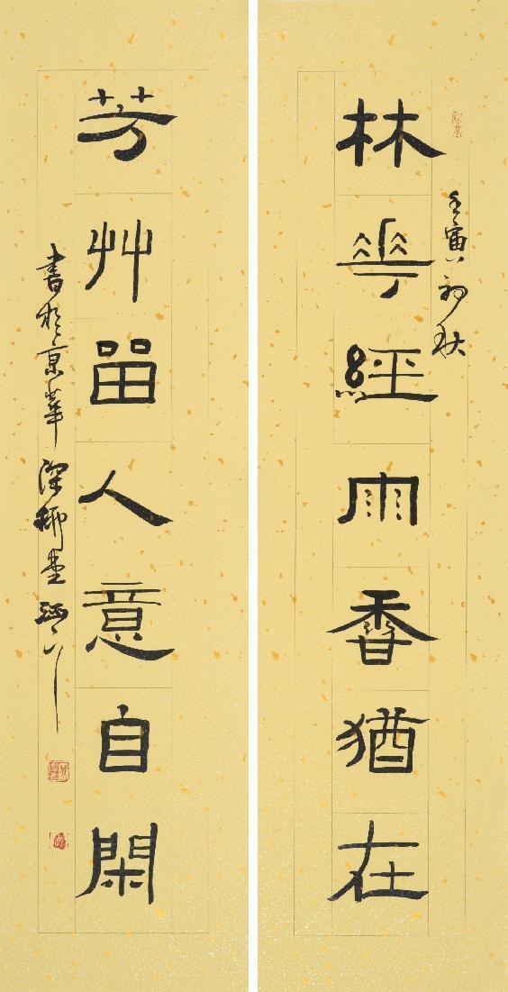 臧新義 隸書(shū)對(duì)聯(lián) 《林花 芳草》