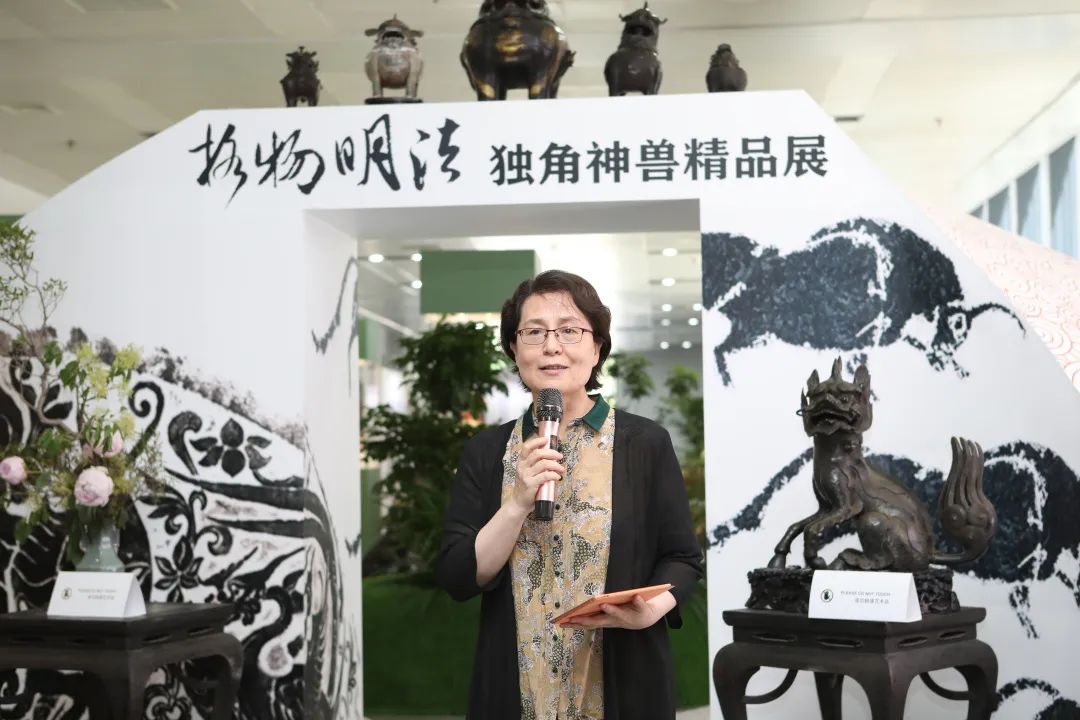 張曉東女士作為主辦方代表介紹了中國法學(xué)交流基金會蔣勇律師專項(xiàng)基金對傳統(tǒng)法治文化和青年法治人才成長的關(guān)注與支持。本次展覽的絕大部分展品系張曉東女士的個(gè)人珍藏。她情真意切地分享了自己的收藏故事,講述鐘情于傳統(tǒng)文化賦予生活的美好意義。她表示本次展覽圓了自己兩個(gè)心愿:一是讓神獸從設(shè)在各地的天同律師事務(wù)所分所跨越千里首次匯集到北京,集合在蔣勇律師的母校中國政法大學(xué)。二是在北京服裝學(xué)院崔巖老師的幫助下復(fù)制出在歷史上流行的獬豸冠。未來,希望通過展覽等文化活動(dòng)的平臺,將熱愛傳統(tǒng)文化的社會各界人士匯聚在一起,為優(yōu)秀傳統(tǒng)法律文化的發(fā)揚(yáng)光大貢獻(xiàn)一份力量。
