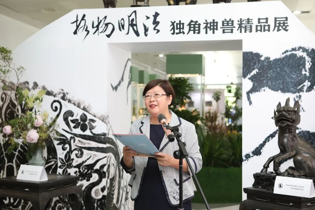 本次展覽的策展人、學(xué)術(shù)主持李雪梅教授向大家介紹了策展理念。中國有著源遠(yuǎn)流長的獨(dú)角崇拜與祥瑞崇拜,創(chuàng)造了形制各異的獨(dú)角神獸,而其中與法律聯(lián)系最為緊密的就是獬豸。獬豸代表了公平正義的執(zhí)法理念,她希望從事法學(xué)教育和法律實(shí)務(wù)的人士及其后備軍心里駐有這只神獸,時(shí)刻提醒、鞭策自己。她介紹本次展覽有很多亮點(diǎn),最大的亮點(diǎn)是復(fù)制了獬豸冠并首次在高校校園中展示,體現(xiàn)了展覽的學(xué)術(shù)追求和育人意義;其次是將時(shí)間跨度2000余年、近百種的神獸匯聚一處,在國內(nèi)也尚屬首次;三是展覽設(shè)計(jì)以鳳凰形象為基調(diào)布置綠植花卉,配以鹿、鶴等標(biāo)本和雅致的音樂,營造出神獸在花園中憩息的祥和景觀。展覽給觀眾提供了一個(gè)欣賞、探究和發(fā)現(xiàn)的場景,希望大家在觀賞中能找到自己心目中的那只理想的獬豸。