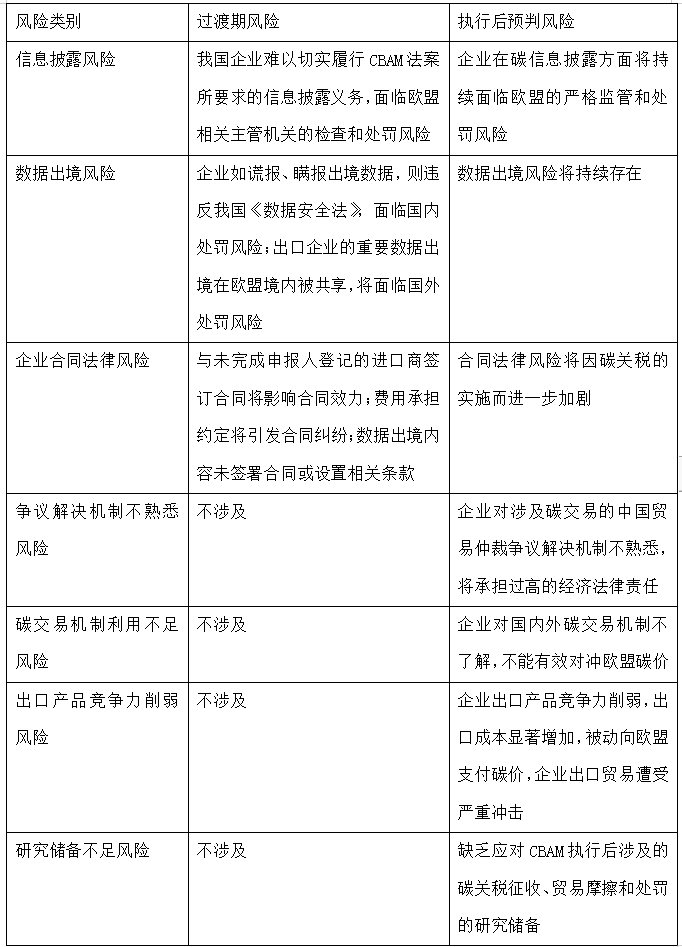 天達(dá)共和碳合規(guī)法律服務(wù)律師結(jié)合相關(guān)研究與實(shí)際案件將中國(guó)企業(yè)在歐盟CBAM中面臨的現(xiàn)實(shí)困境按照影響方面、風(fēng)險(xiǎn)類別及潛在后果進(jìn)行匯總,供大家參閱。