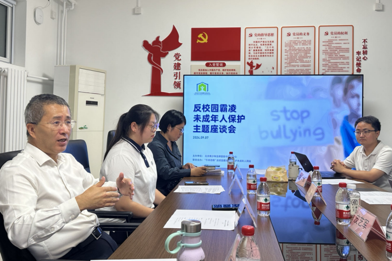 9月7日,以“反校園霸凌 未成年人保護(hù)”為主題的座談會在北京青少年法律援助與研究中心舉辦。法學(xué)專家、法律援助律師、心理專家、學(xué)生與家長代表們圍繞校園霸凌行為的危害性、法律救濟(jì)的理論與實踐,深入交流研討,集實招、謀良策,引導(dǎo)社會各界共同守護(hù)青春校園與未成年人健康成長。