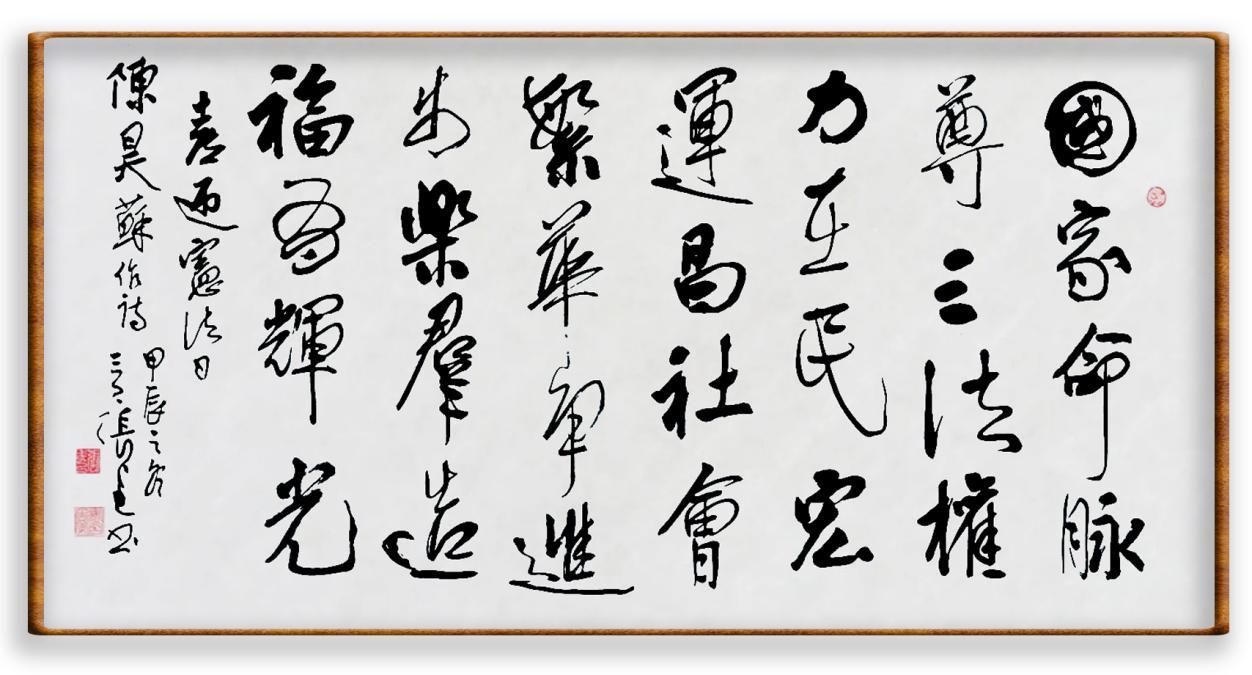 12月4日是第十一個(gè)國家憲法日。當(dāng)天,由法制日?qǐng)?bào)社、中國人民解放軍儀仗司禮大隊(duì)主辦的“‘書·法’系列活動(dòng)走進(jìn)中國人民解放軍儀仗司禮大隊(duì)暨‘書·法’系列叢書書法作品集首發(fā)活動(dòng)”在北京舉行。活動(dòng)得到中國人民對(duì)外友好協(xié)會(huì)原會(huì)長陳昊蘇的熱情支持,陳會(huì)長以《喜迎憲法日》為題賦詩二首,并在詩的開頭寫到:“在國家憲法日舉行‘書·法’有關(guān)活動(dòng),意義十分重大。我謹(jǐn)寄上詩二首,表示熱烈祝賀?!?/p>