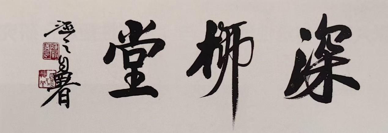 深柳堂正堂約三十平,中置三米大書案,后一列四米書柜,書籍滿墻,宣紙堆山。另有木榻竹幾,散貯書卷。書案正對(duì)一個(gè)書法中堂,兩側(cè)為自書陸放翁書房對(duì)聯(lián):萬(wàn)卷古今消永日,一窗昏曉送流年?!松喽蹋扑髂?,我亦愿在這深柳堂中南窗寄傲,蘊(yùn)藉滋養(yǎng)著仿佛貫穿千載時(shí)光的淡定與從容。
