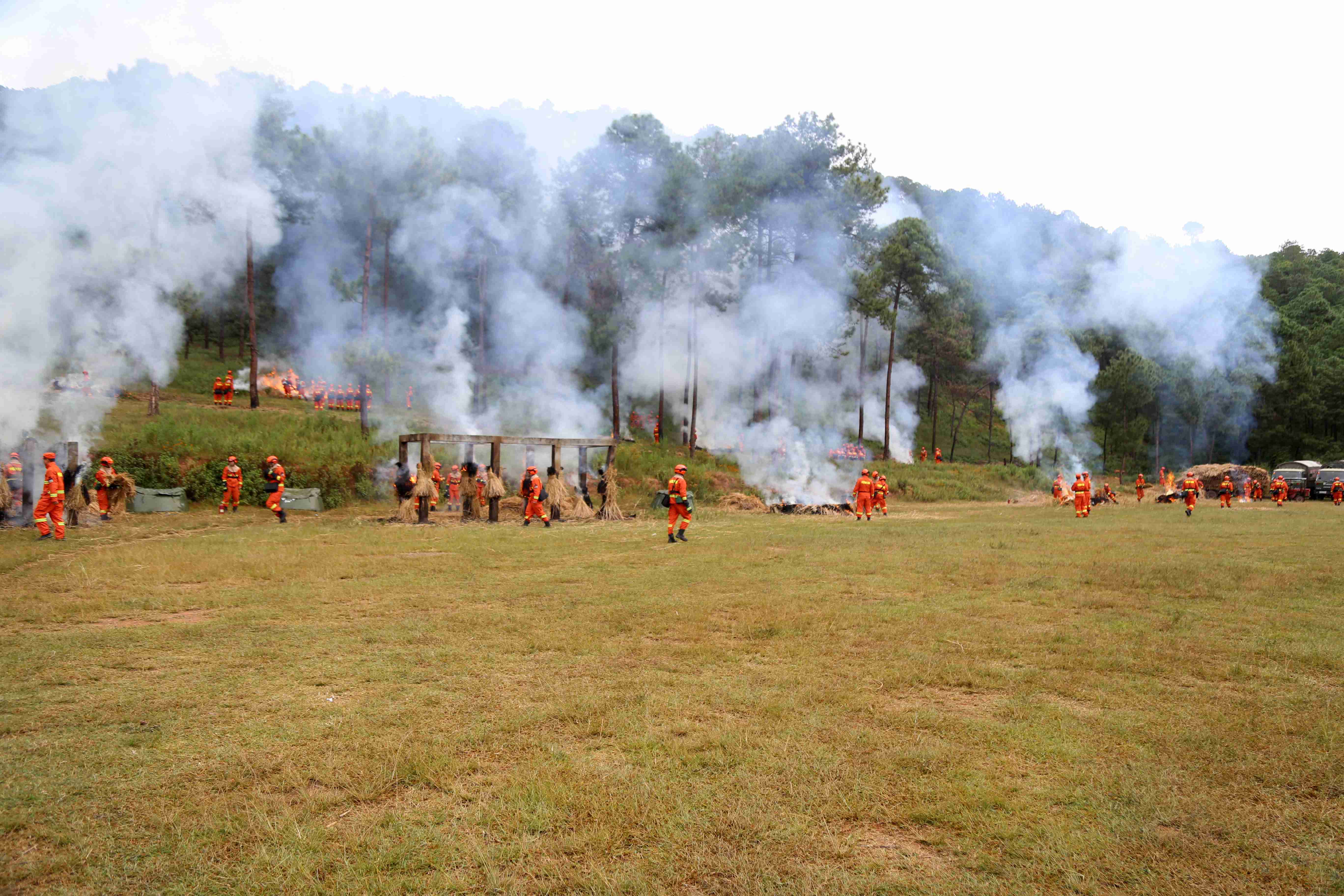 涼山森林消防支隊野外駐訓(xùn)場上硝煙彌漫。