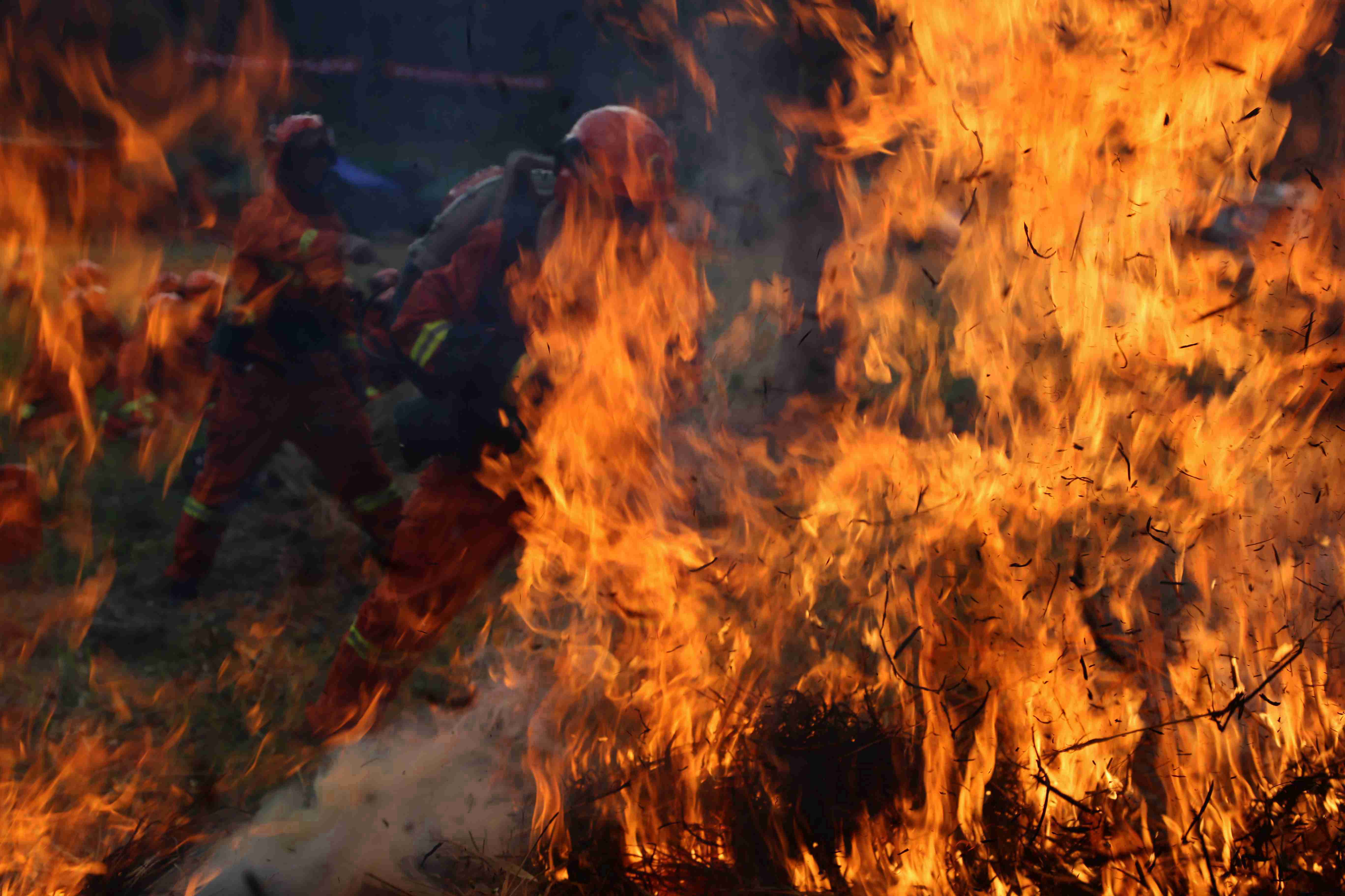 火燒了起來,加斯伍各看到中隊長“開始”的手勢,帶頭沖了上去,與灼熱的氣浪剛打了個照面,他本能地后退了幾步,但一想到老隊員都在身后看著,這個要強(qiáng)的彝族小伙不服輸?shù)哪枪蓜乓幌戮蜕蟻砹耍瑩]舞著手中的風(fēng)機(jī)與火魔斗了起來。
