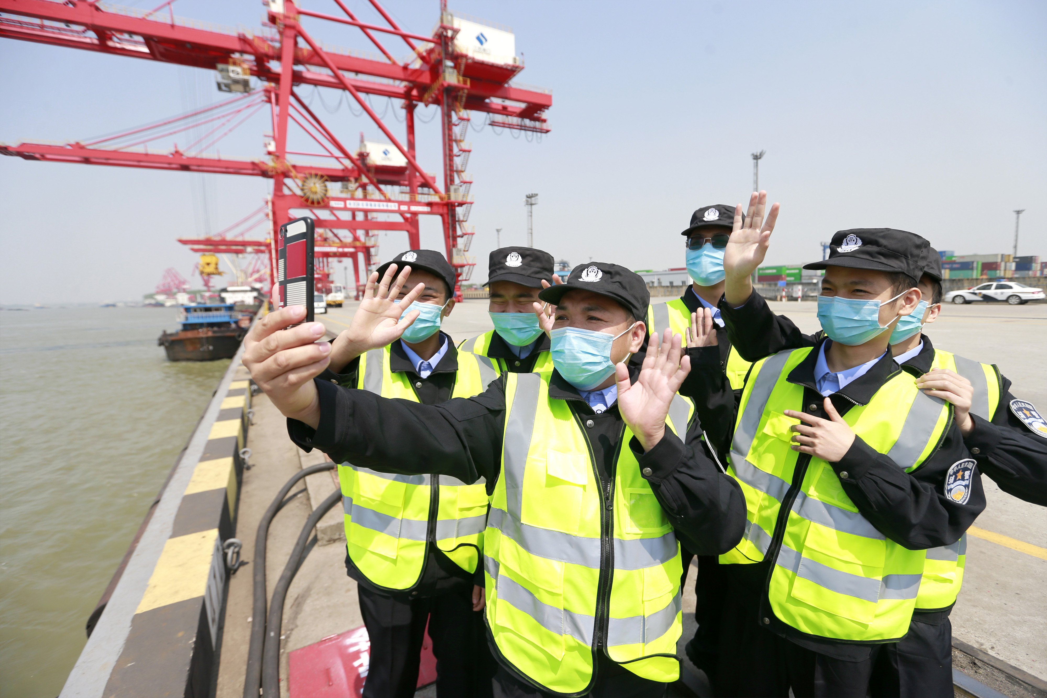 4月27日,南京港出入境邊檢站廣西籍輔警吳治額利用在碼頭參觀間隙,和遠在廣西的家人視頻聊天,介紹工作環(huán)境,與小伙伴們一起分享喜悅。
