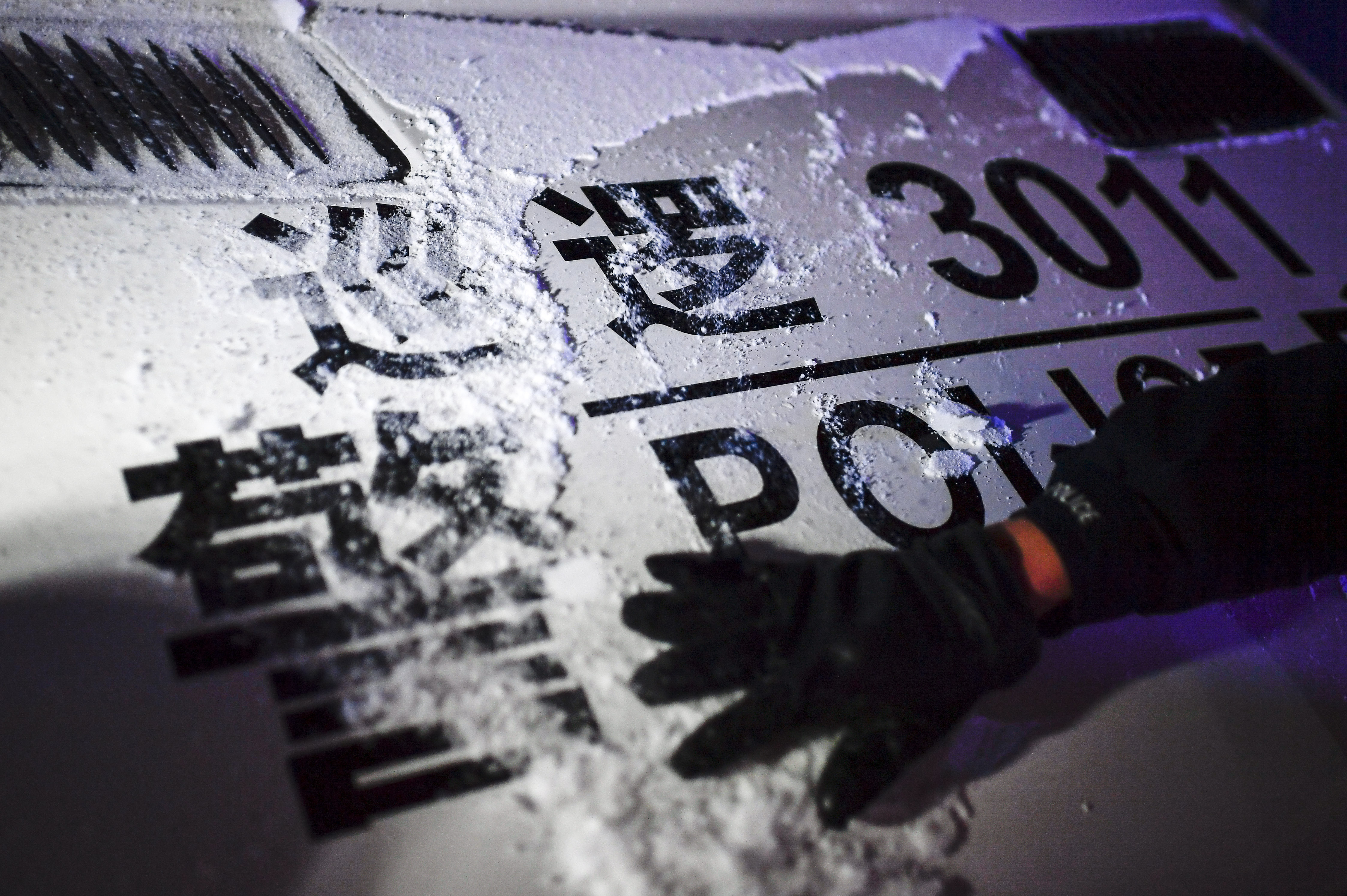 長(zhǎng)春市公安局重慶路派出所民警王廣輝清理巡邏車上的積雪(1月6日攝)。