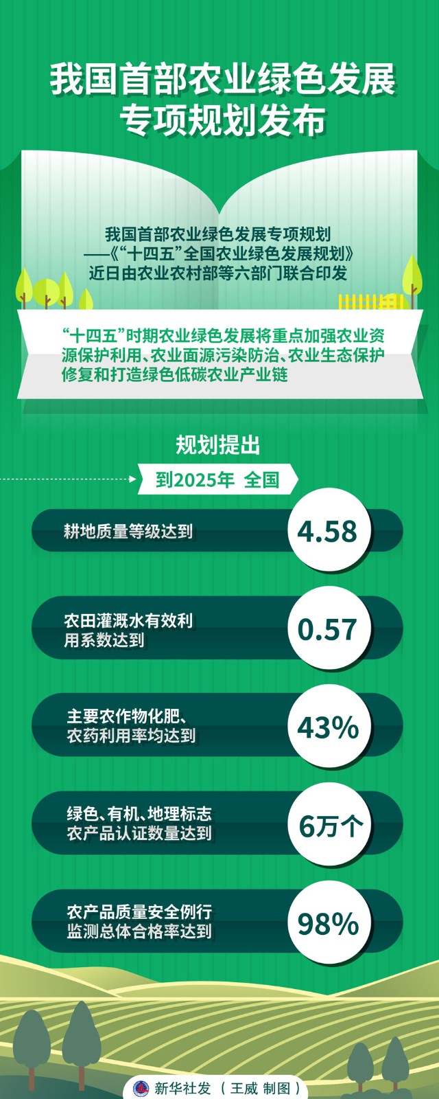 我國首部農(nóng)業(yè)綠色發(fā)展專項規(guī)劃——《“十四五”全國農(nóng)業(yè)綠色發(fā)展規(guī)劃》近日由農(nóng)業(yè)農(nóng)村部等六部門聯(lián)合印發(fā)。