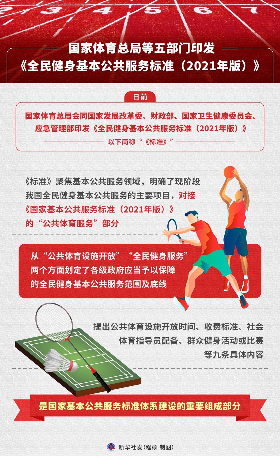 日前,國(guó)家體育總局會(huì)同國(guó)家發(fā)展改革委、財(cái)政部、國(guó)家衛(wèi)生健康委員會(huì)、應(yīng)急管理部印發(fā)《全民健身基本公共服務(wù)標(biāo)準(zhǔn)(2021年版)》(以下簡(jiǎn)稱(chēng)“《標(biāo)準(zhǔn)》”)。