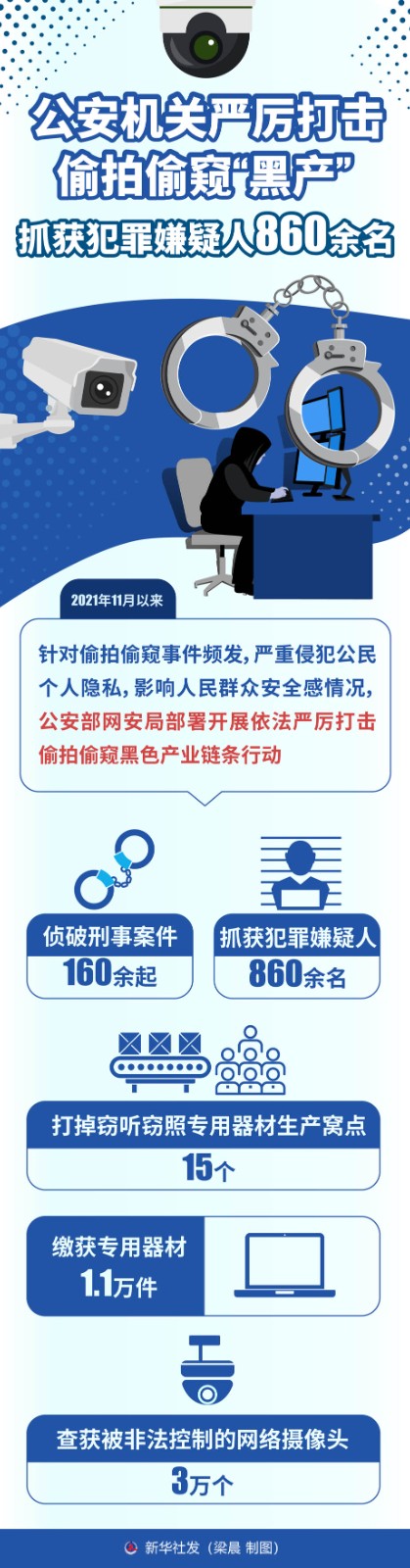 圖表:公安機關(guān)嚴厲打擊偷拍偷窺“黑產(chǎn)” 抓獲犯罪嫌疑人860余名