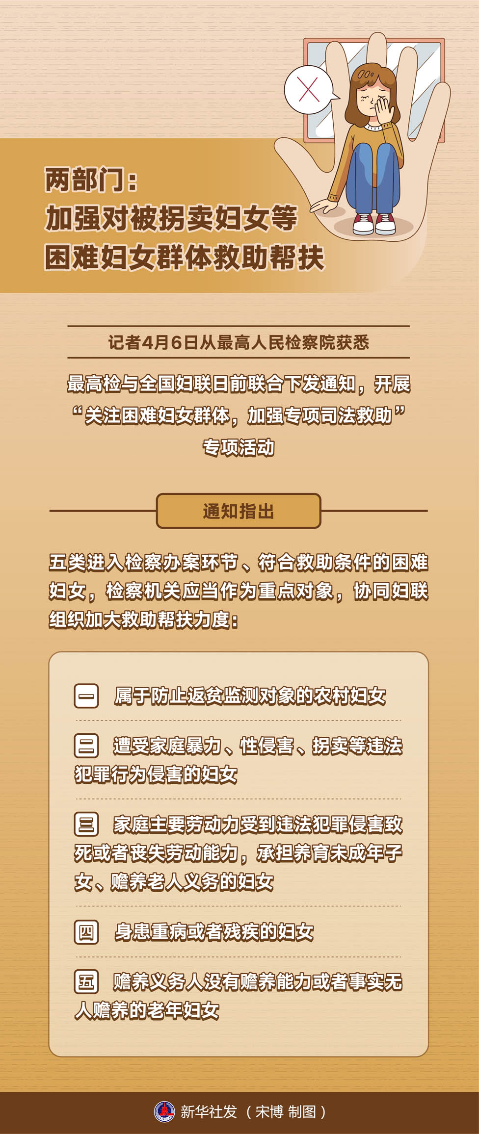 記者4月6日從最高人民檢察院獲悉,最高檢與全國婦聯(lián)日前聯(lián)合下發(fā)通知,開展“關(guān)注困難婦女群體,加強(qiáng)專項(xiàng)司法救助”專項(xiàng)活動。專項(xiàng)活動已于3月啟動,將持續(xù)至今年年底。