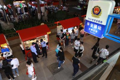 圖為5月20日晚,張掖路派出所民警輔警在步行街夜市開展巡邏和安全宣傳。