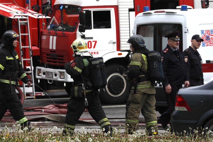 6月3日,在俄羅斯首都莫斯科,救援人員在火災(zāi)現(xiàn)場工作。