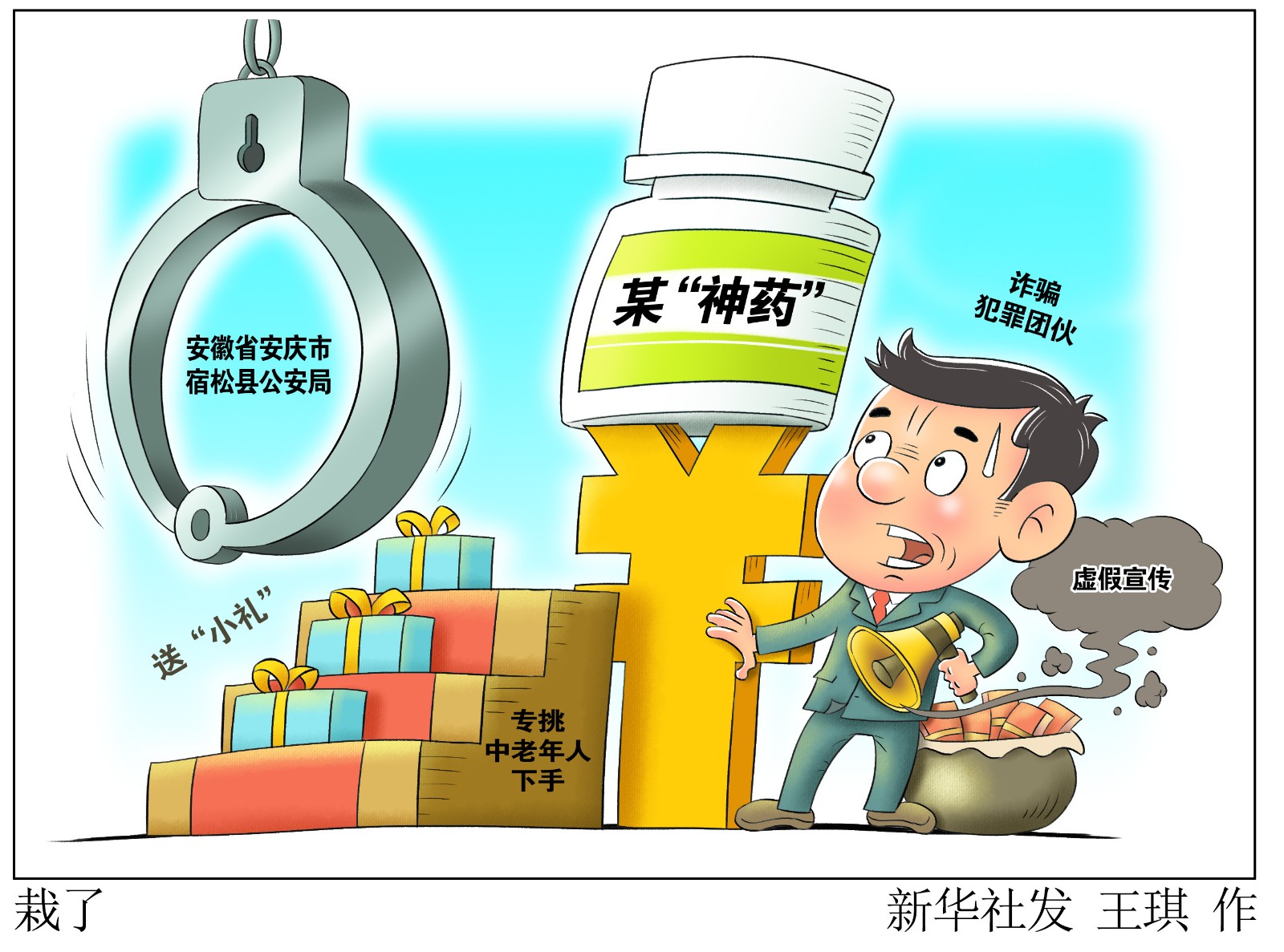 評(píng)書(shū)機(jī)、老人鞋等“小禮”請(qǐng)先笑納,“包治百病”的“神藥”快來(lái)試試?小心“騙你沒(méi)商量”!記者日前從安徽省安慶市宿松縣公安局了解到,當(dāng)?shù)鼐酱虻粢粋€(gè)向中老年群體虛假宣傳兜售藥品進(jìn)行詐騙的犯罪團(tuán)伙,全國(guó)多地?cái)?shù)千人上當(dāng),涉案金額近千萬(wàn)元。