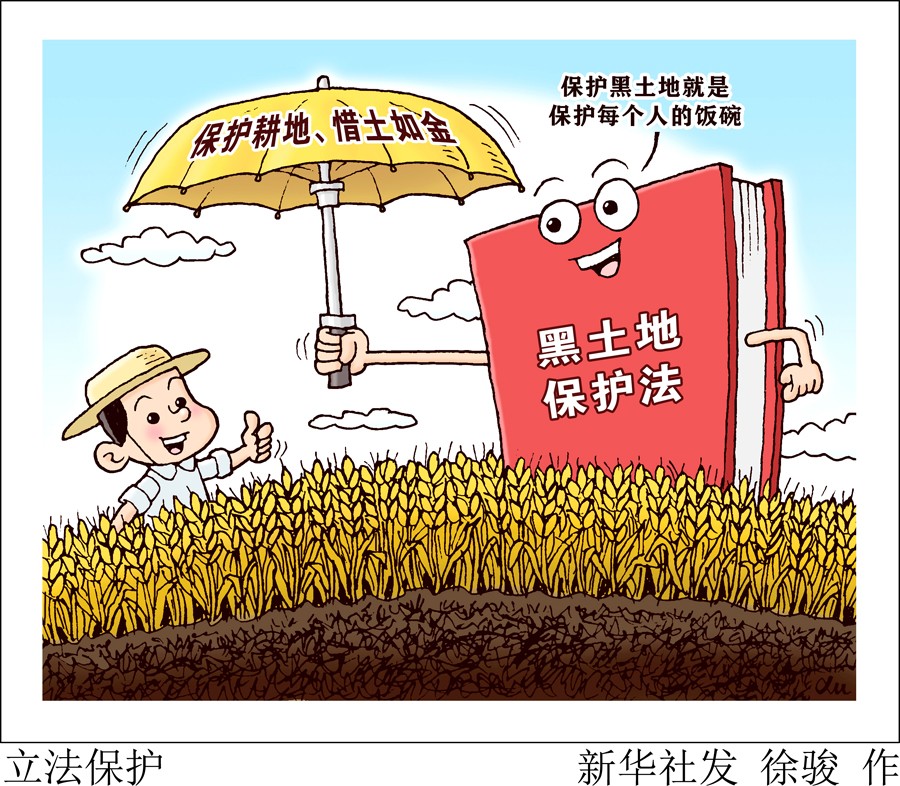 歷經(jīng)三次審議,十三屆全國人大常委會(huì)第三十五次會(huì)議6月24日表決通過黑土地保護(hù)法。以“小快靈”專門立法保護(hù)“耕地中的大熊貓”,釋放了保護(hù)耕地、惜土如金的重要信號。
