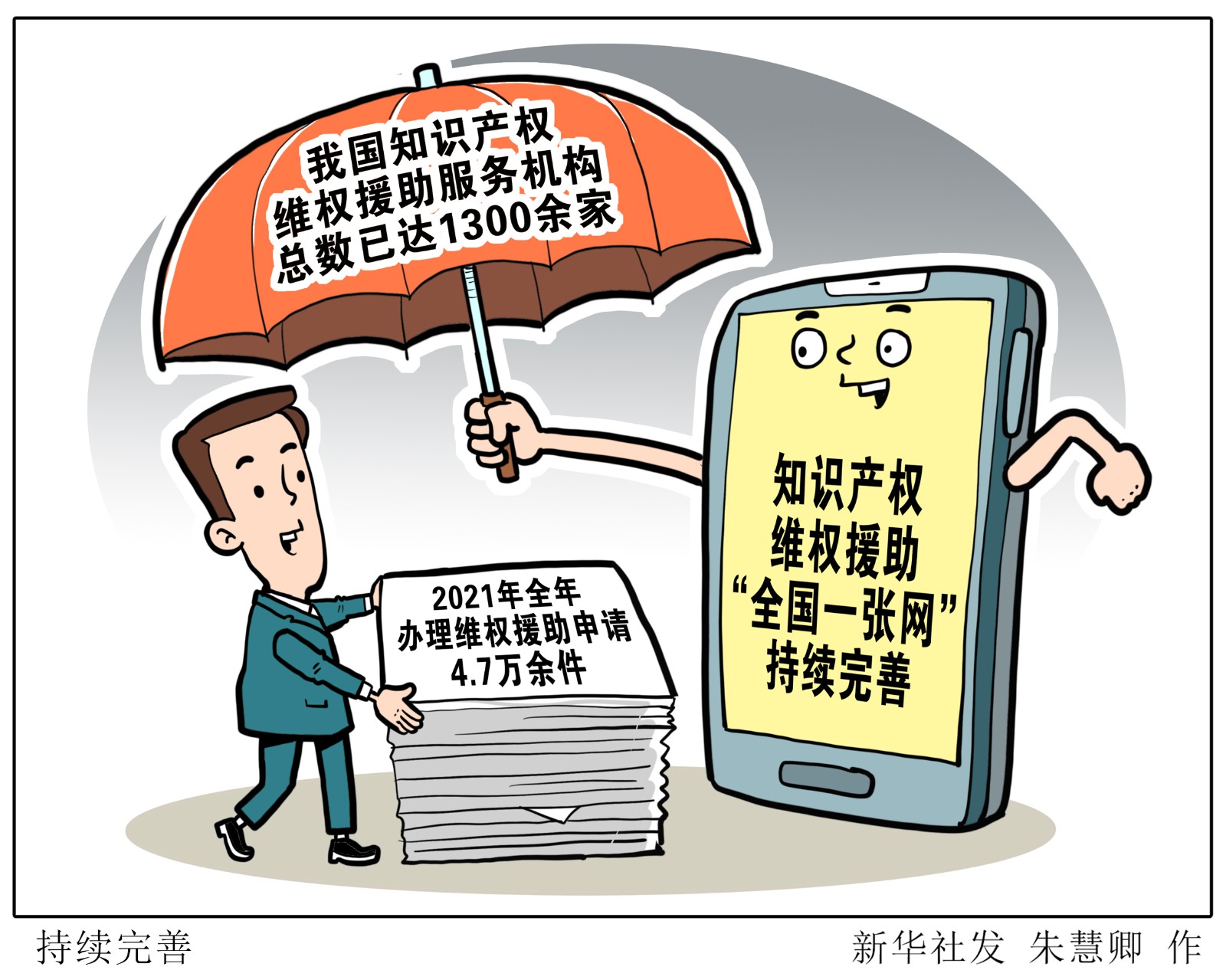 知識產(chǎn)權(quán)維權(quán)援助是知識產(chǎn)權(quán)公共服務(wù)的重要一環(huán)。國家知識產(chǎn)權(quán)局近日發(fā)布了《2021年全國知識產(chǎn)權(quán)維權(quán)援助工作進(jìn)展報告》。報告顯示,我國知識產(chǎn)權(quán)維權(quán)援助服務(wù)機構(gòu)總數(shù)已達(dá)1300余家,2021年全年辦理維權(quán)援助申請4.7萬余件,知識產(chǎn)權(quán)維權(quán)援助“全國一張網(wǎng)”持續(xù)完善。