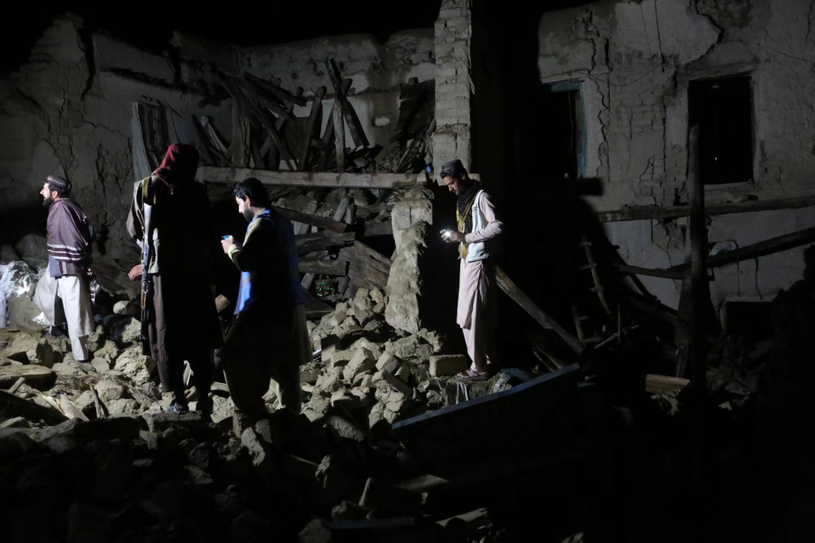 6月22日,在阿富汗東部帕克提卡省的一個(gè)村莊,人們查看地震中受損的房屋。