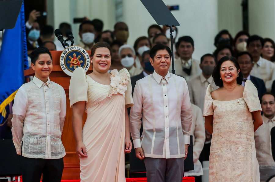 6月30日,費迪南德·羅慕爾德茲·馬科斯(前右二)在菲律賓首都馬尼拉出席總統(tǒng)就職典禮。
