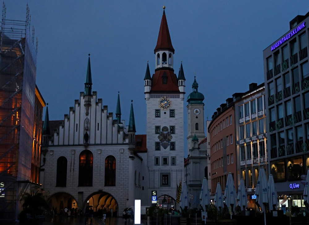 這是7月30日晚拍攝的德國慕尼黑老市政廳。