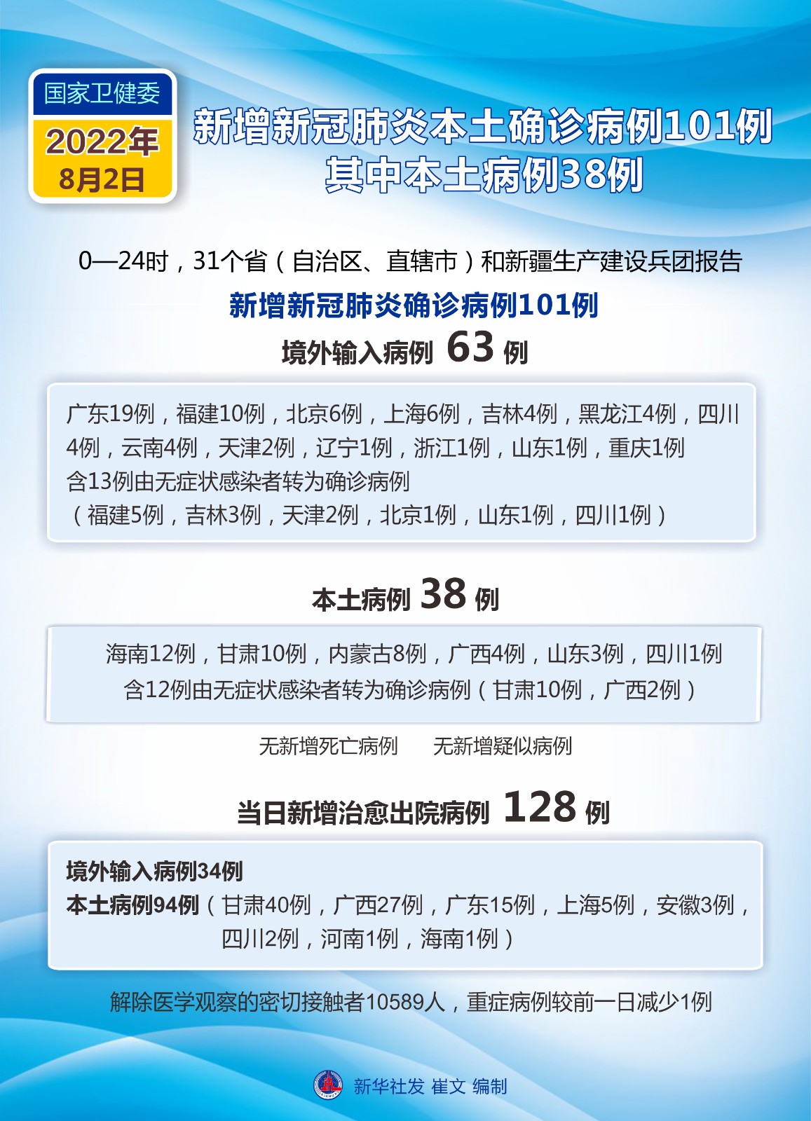 (圖表)國家衛(wèi)健委:8月2日新增新冠肺炎確診病例101例 其中本土病例38例