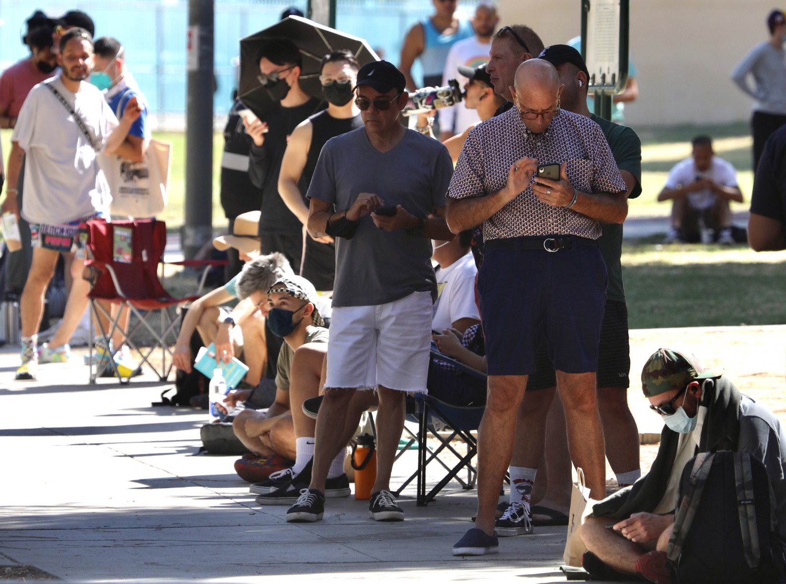 8月6日,人們?cè)诿绹?guó)洛杉磯一處猴痘疫苗接種點(diǎn)排隊(duì)。