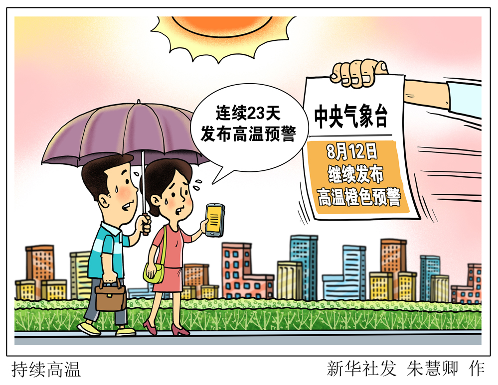 中央氣象臺8月12日繼續(xù)發(fā)布高溫橙色預警,至此,中央氣象臺已連續(xù)23天發(fā)布高溫預警。