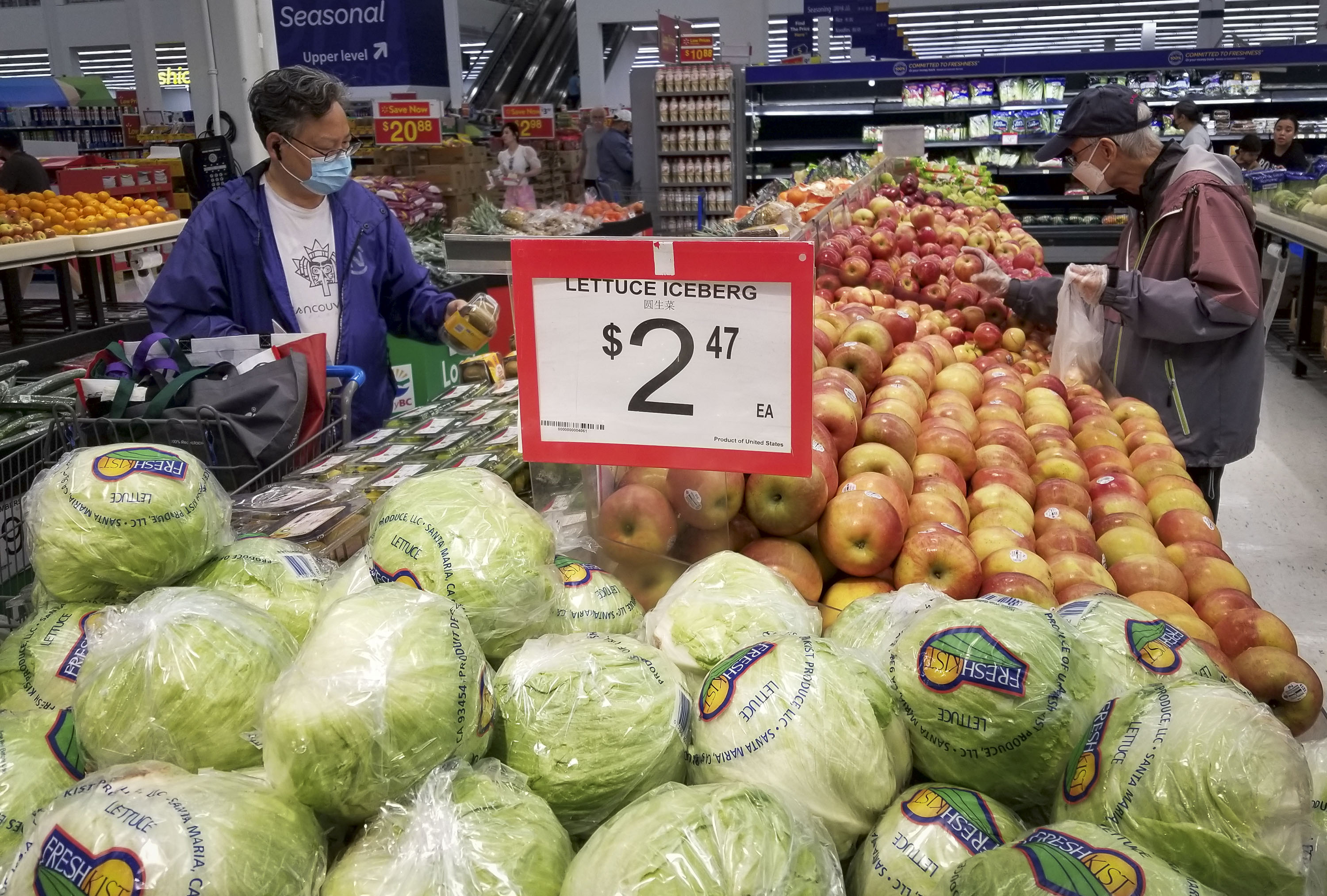 8月16日,顧客在加拿大溫哥華一家超市選購食品。