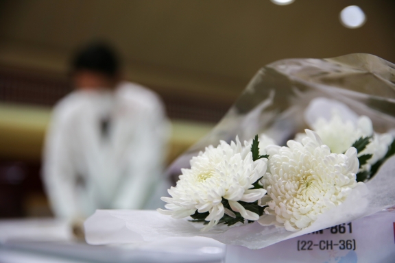 9月15日,在韓國仁川,韓方工作人員將志愿軍烈士遺骸入殮。