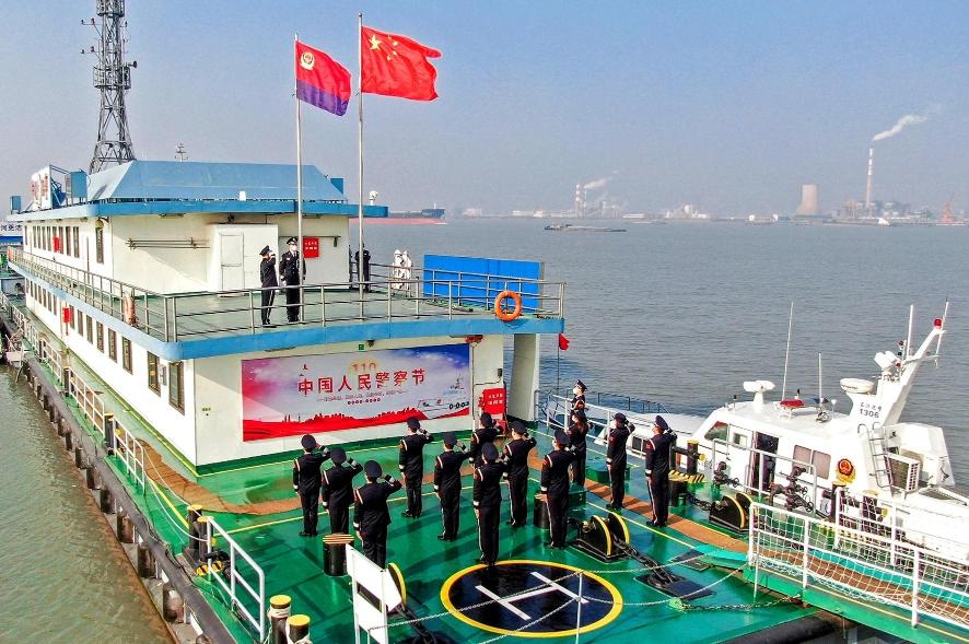1月9日,長江航運公安局鎮(zhèn)江分局聯(lián)合鎮(zhèn)江出入境邊防檢查站、鎮(zhèn)江市國家安全局在全國內(nèi)河最大的十字交匯水域六圩河口的水上服務區(qū)開展了形式多樣的主題活動。