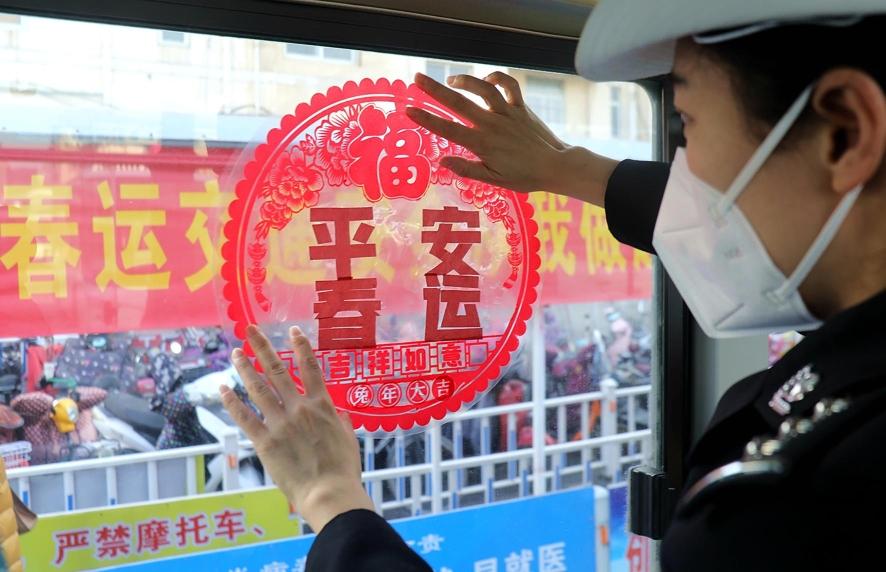 1月7日,安徽省舒城縣公安局交管大隊民警走進轄區(qū)客運總站向駕乘人員普及冬季出行安全知識,并贈送與“平安春運”有關(guān)的剪紙、張貼畫等。