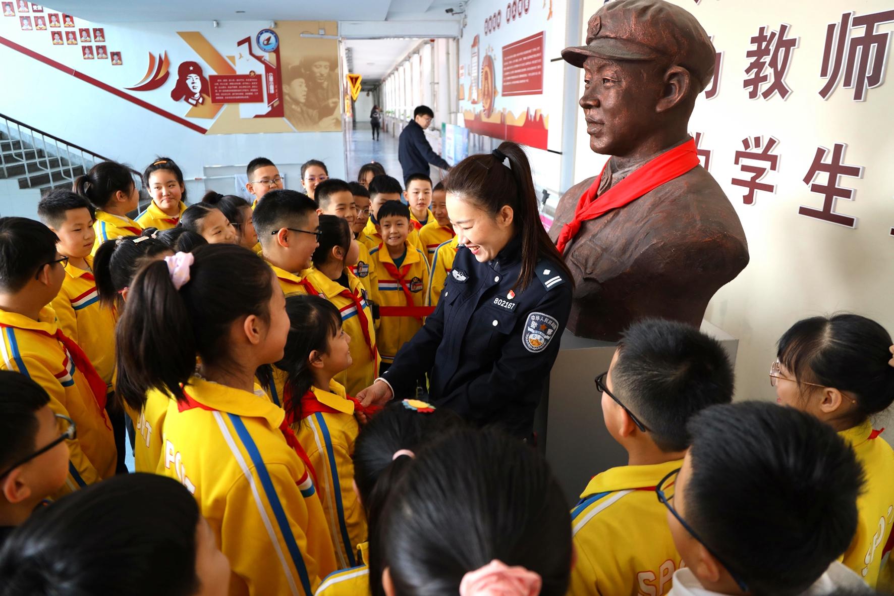 3月2日,河南省鄭州市公安局金水分局巡特警隊員在實驗小學(xué)開展“雷鋒精神 春暖校園”活動。
