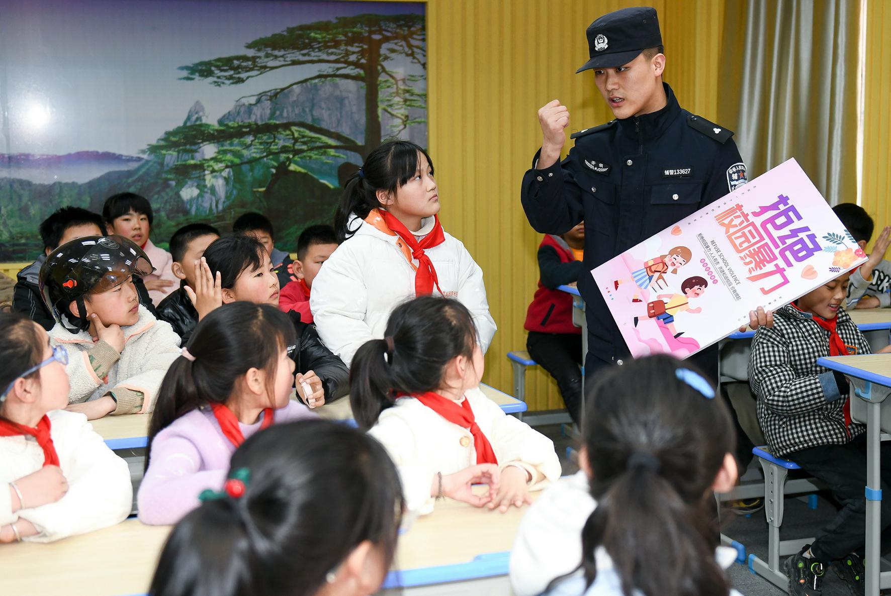 3月27日,安徽省馬鞍山市和縣公安局石楊派出所民警在石楊鎮(zhèn)中心小學(xué)開(kāi)展“拒絕校園暴力”法治講座。