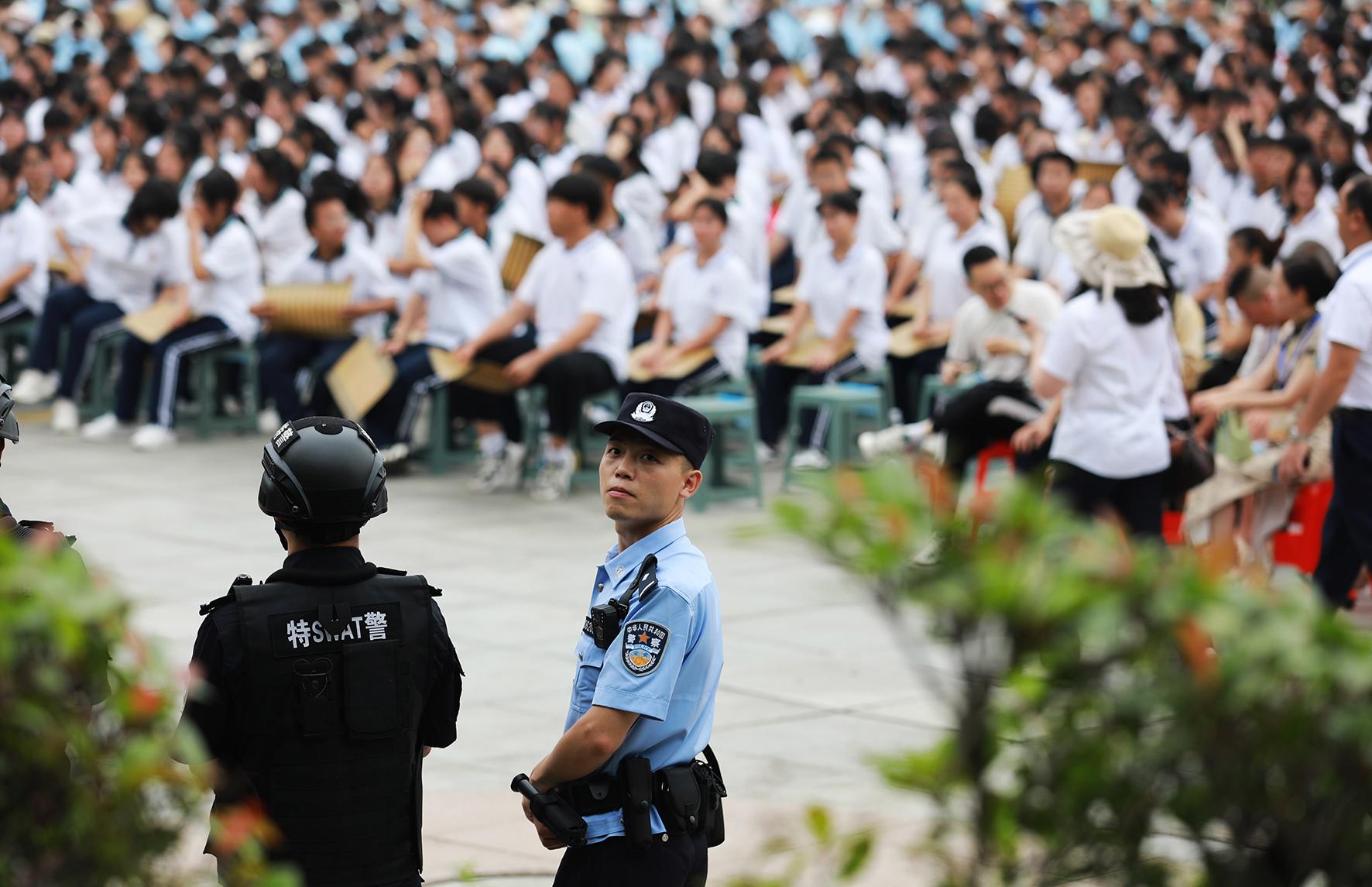 6月22日,江蘇省無錫市公安局梁溪分局巡特警隊員在清名橋歷史文化街區(qū)值守,確?,F(xiàn)場安全有序。