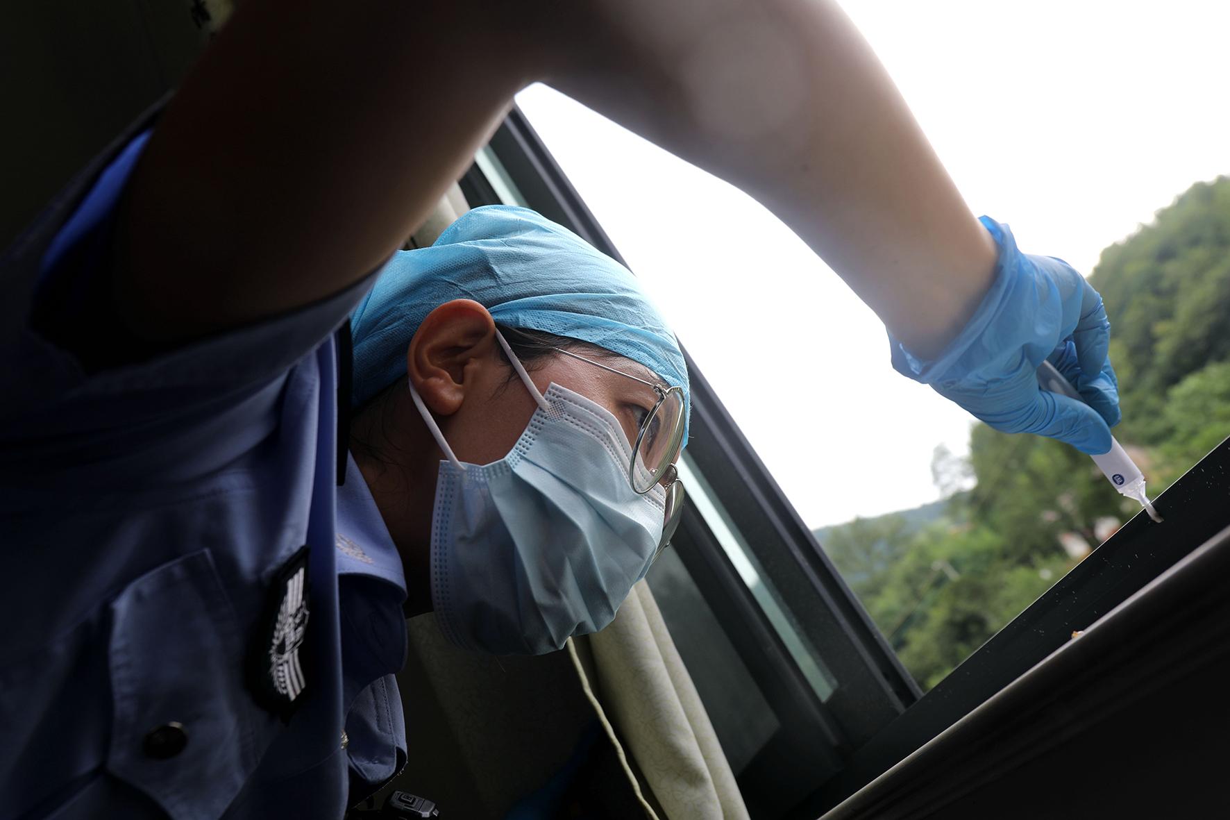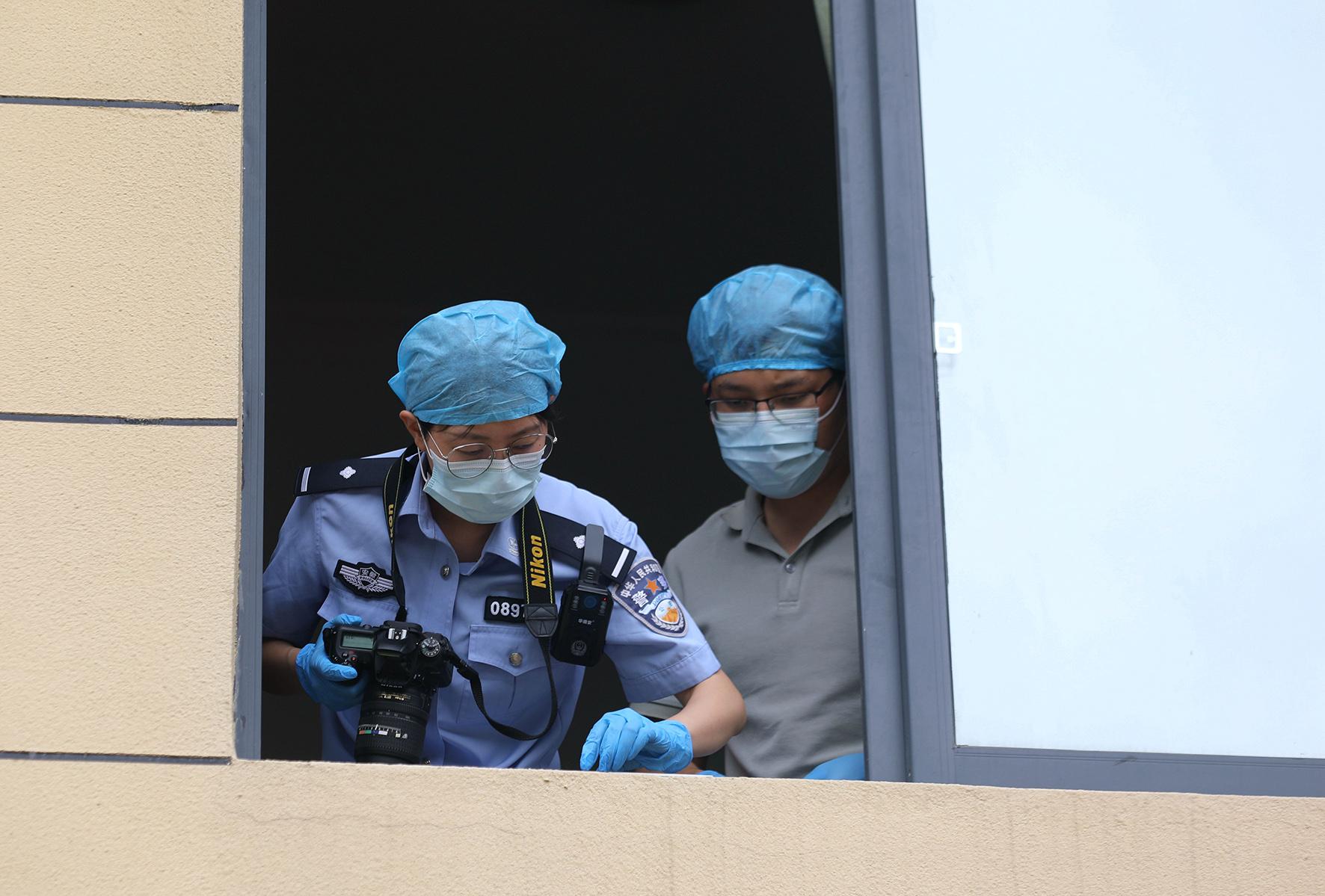 圖五、現(xiàn)場勘查結(jié)束,民警終于可以摘下頭套歇會兒。