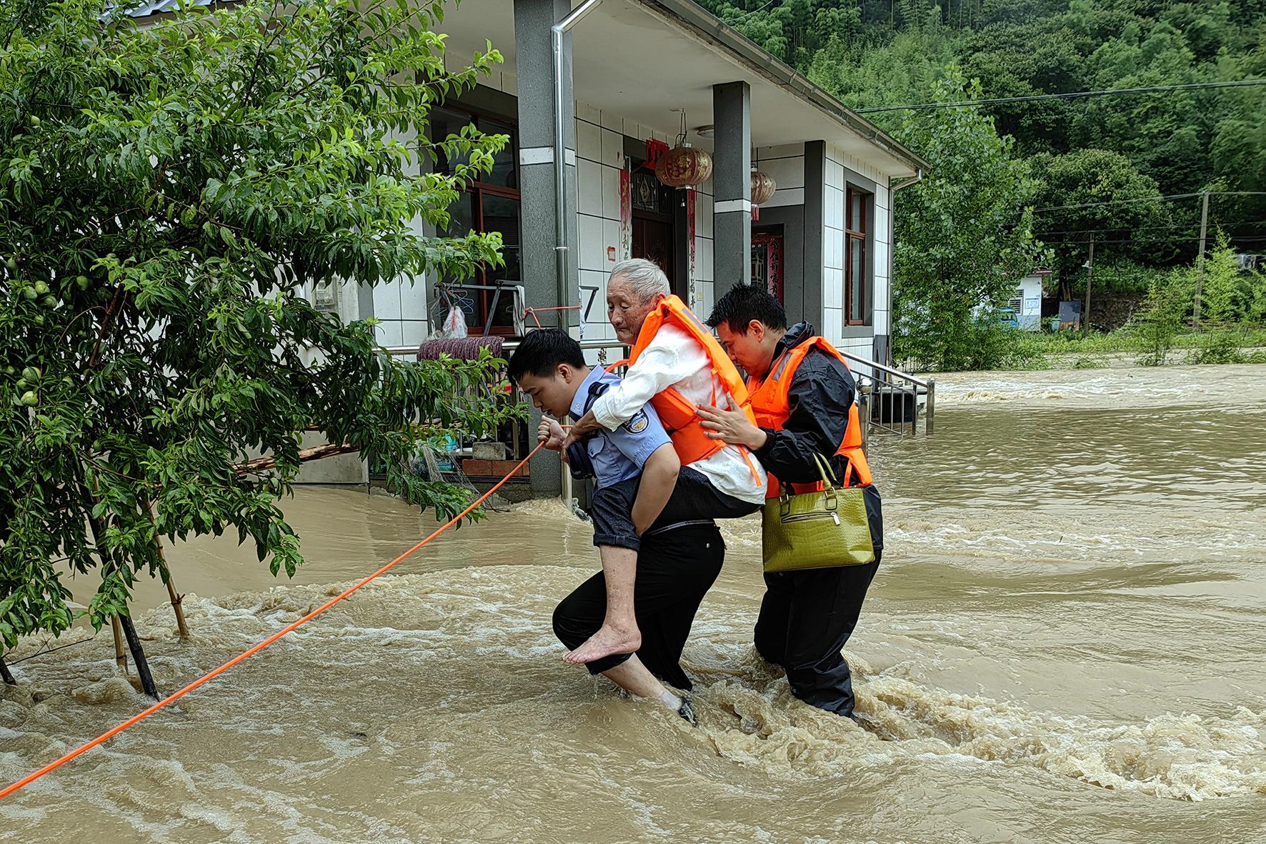 7月5日,因遭持續(xù)強(qiáng)降雨天氣侵襲,安徽省寧國(guó)市公安局中溪派出所轄區(qū)中溪鎮(zhèn)鳳凰村河道水位猛漲,2位老人被困。情急時(shí)刻,正在開(kāi)展防汛搶險(xiǎn)工作的民輔警攜帶救援工具與政府工作人員迅速趕到現(xiàn)場(chǎng),成功將2名老人轉(zhuǎn)移到安全區(qū)域。