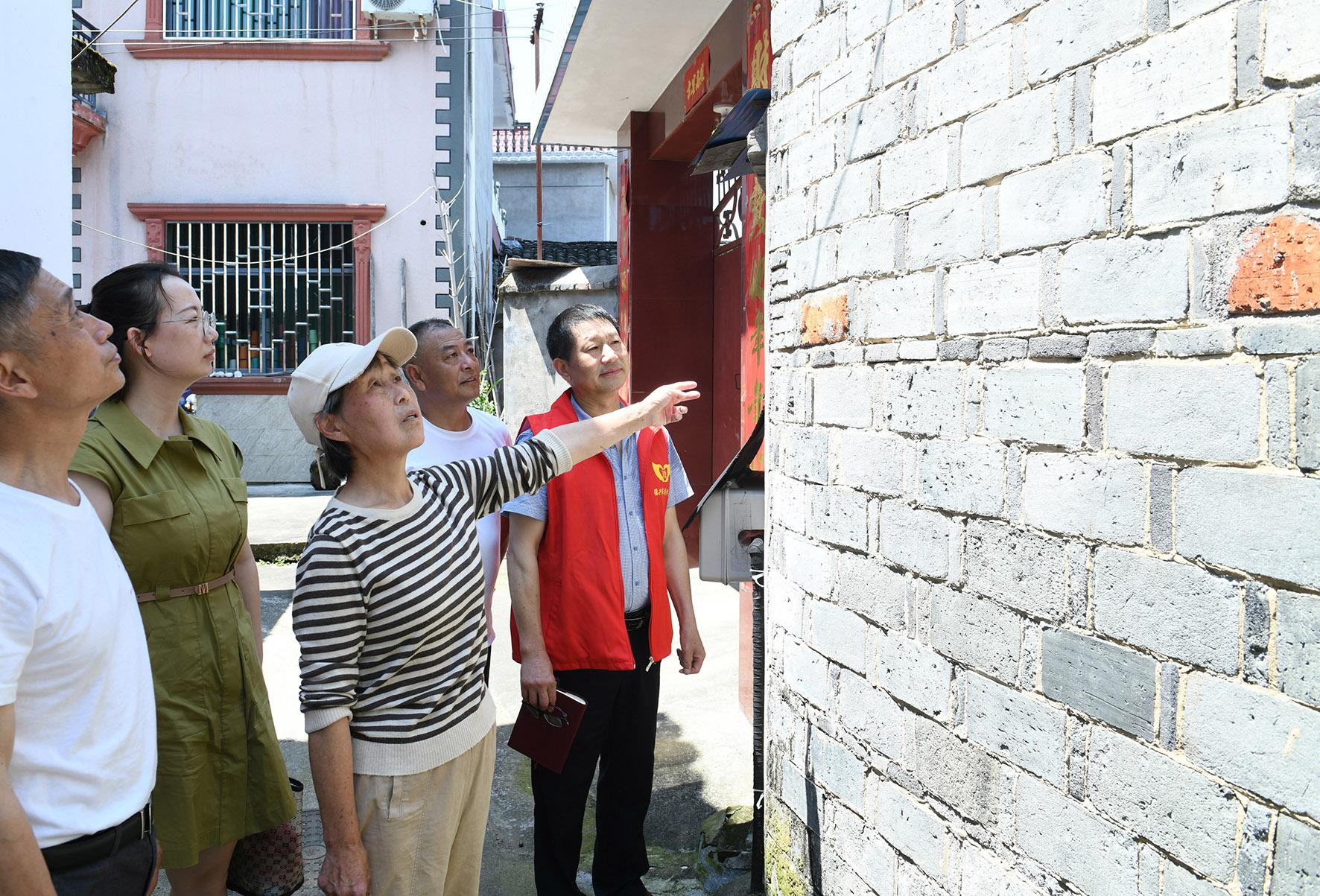圖三:應(yīng)火根(右)與當(dāng)事人實地查看引起糾紛的老房屋地基。