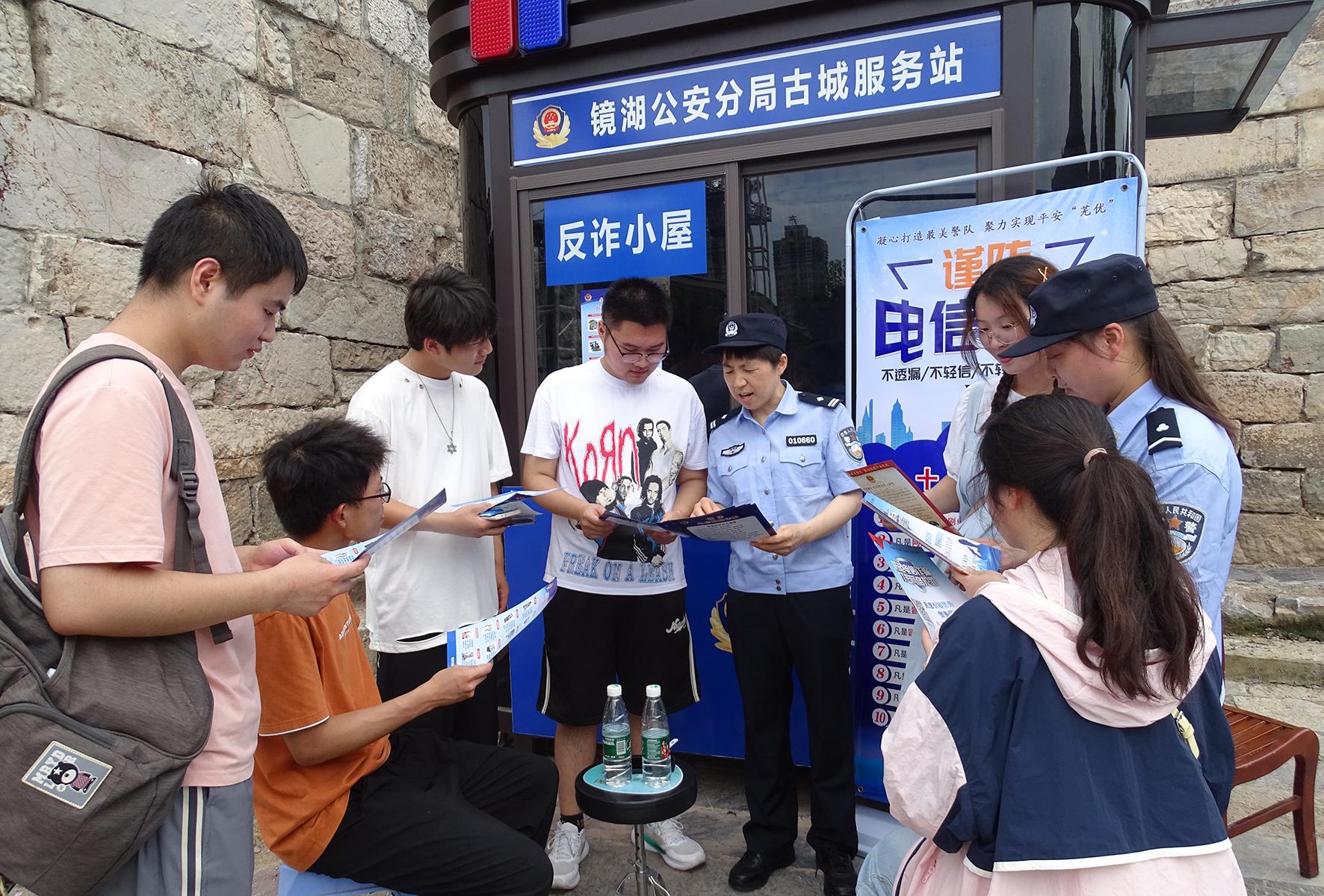 為進一步提高群眾防范網(wǎng)絡(luò)電信詐騙意識,延伸防范電詐觸角,7月6日,安徽省蕪湖市公安局鏡湖分局分局東門派出所創(chuàng)新反詐宣傳方式,在古城景區(qū)專門設(shè)置了一間“反詐小屋”,游客可以隨時領(lǐng)取宣傳單、掃反詐二維碼、觀看警示教育。