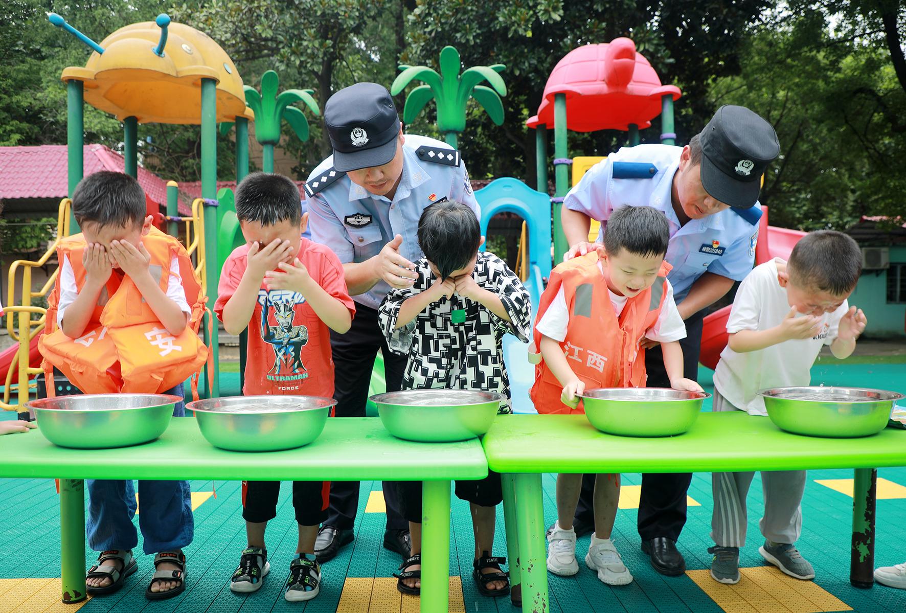 7月25日,江西省九江市公安局濂溪分局劉家塘派出所民輔警來到轄區(qū)幼兒園開展主題為“預(yù)防溺水 珍愛生命”防溺水安全宣傳活動。