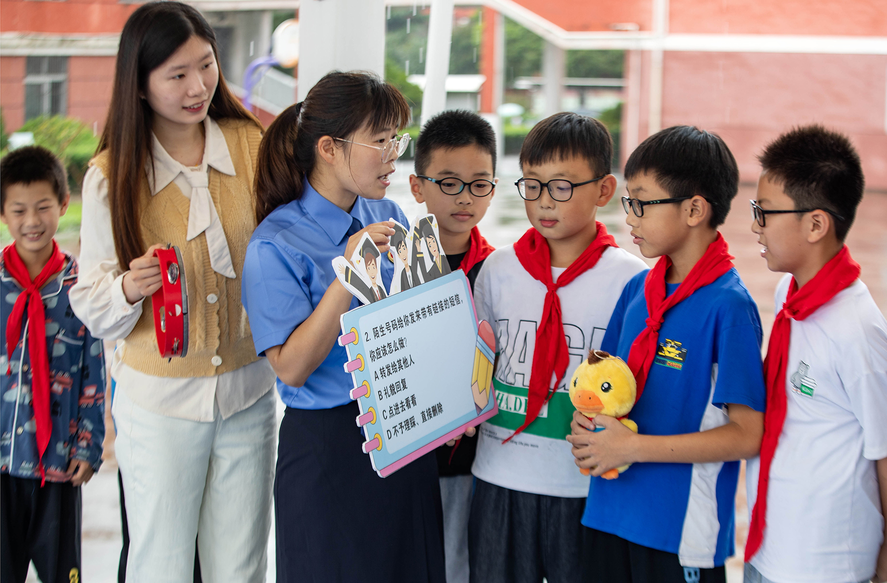 9月15日,江蘇省泰州市姜堰區(qū)人民檢察院干警組織克強(qiáng)學(xué)校的學(xué)生以“擊鼓傳花”游戲的方式學(xué)習(xí)網(wǎng)絡(luò)安全知識。