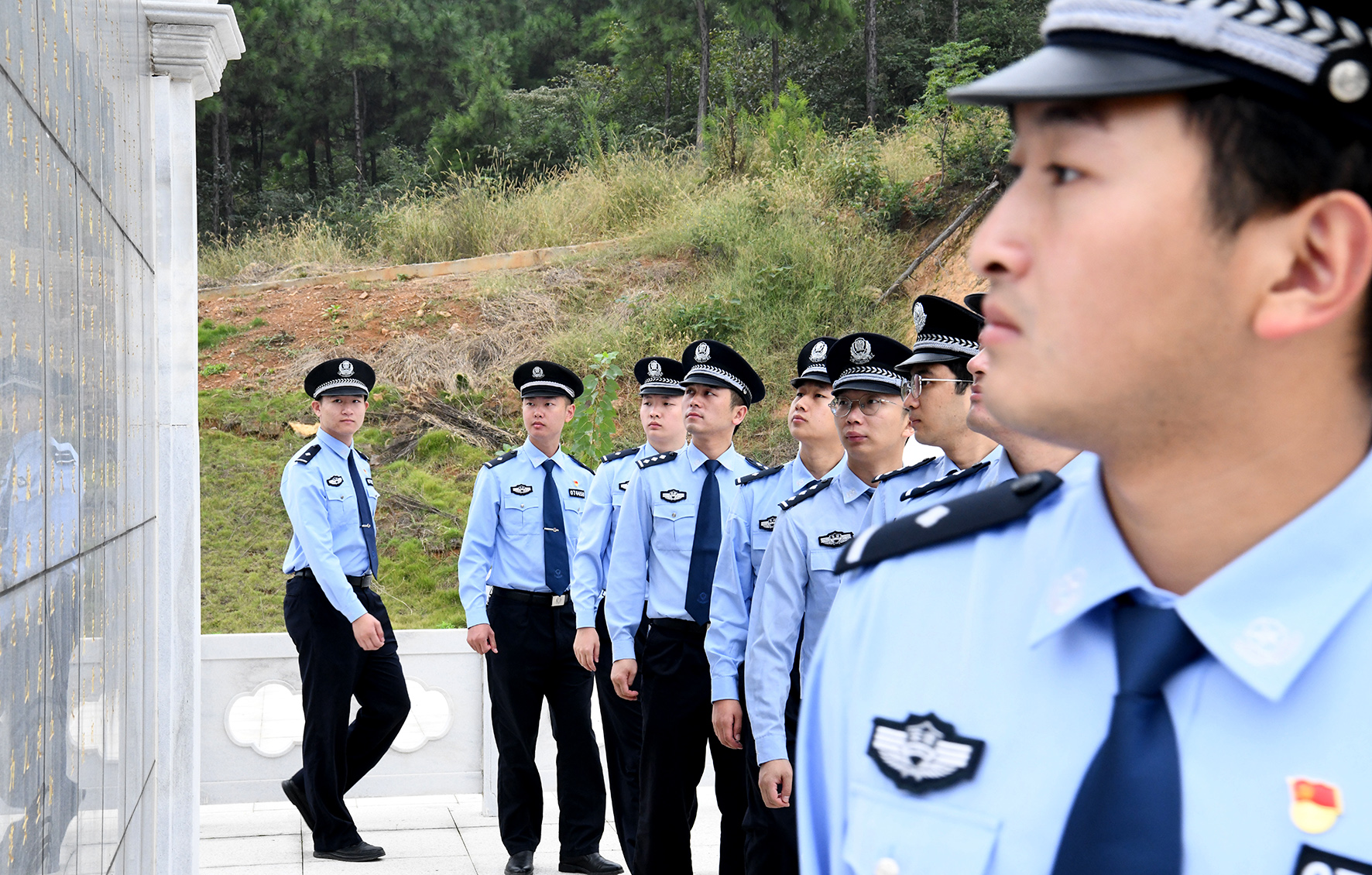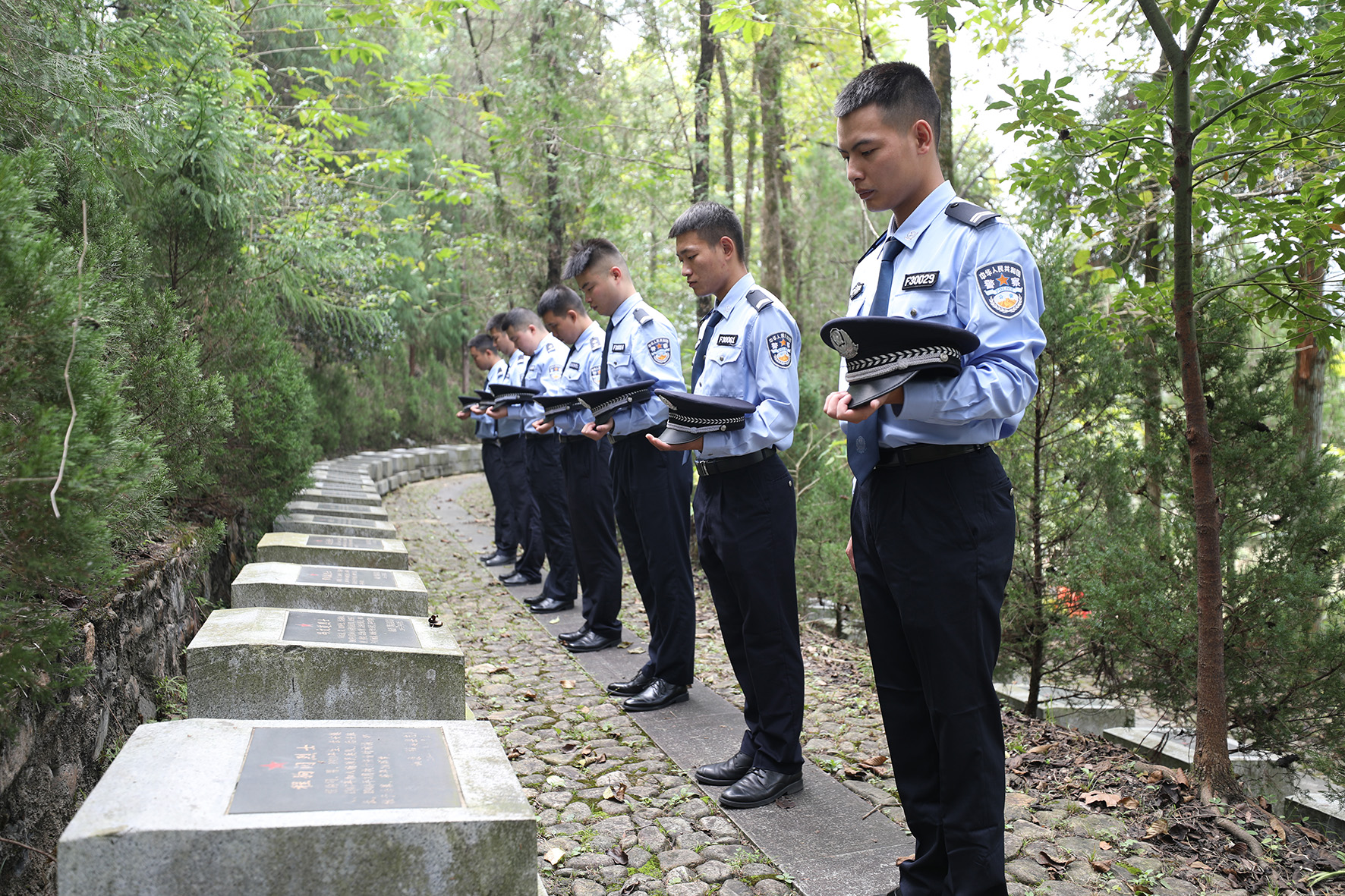 9月27日,安徽省宣城市公安局與寧國市公安局組織青年民警代表前往烈士陵園緬懷英烈。