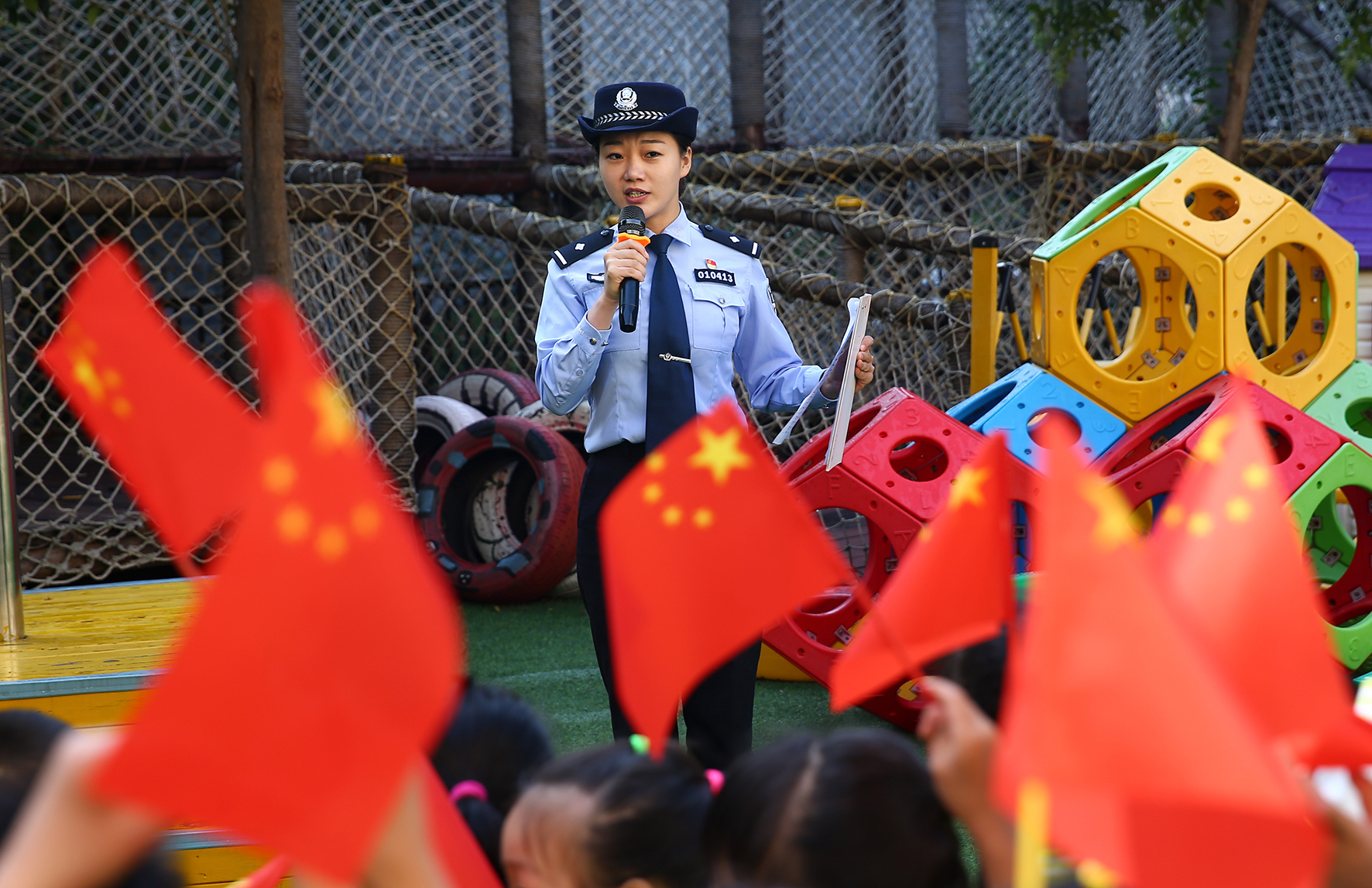 9月28日,山東省濟南市公安局市中區(qū)分局民警來到幼兒園開展愛國主義教育,喜迎國慶節(jié)。