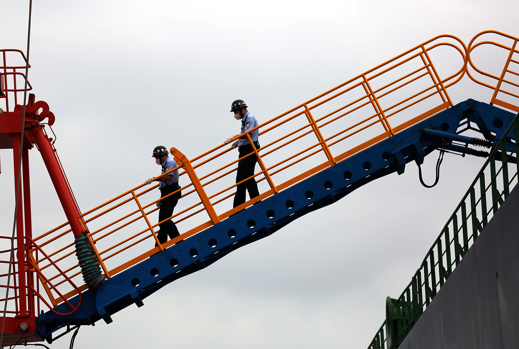 10月4日,寧波出入境邊防檢查站綜合執(zhí)勤七隊(duì)民警開展碼頭巡查及登輪檢查。