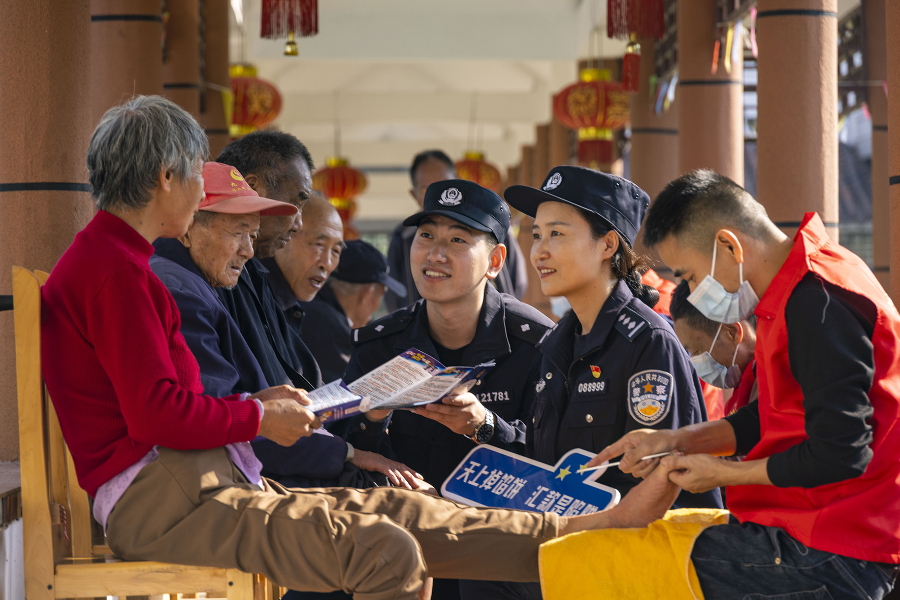 10月22日,山東濟(jì)南養(yǎng)老服務(wù)中心,濟(jì)南市公安局市中區(qū)分局十六里河派出所輔警正在對老人進(jìn)行反電詐宣傳教育。